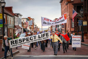 Before the march began, Bishop Joseph L. Coffey, an auxiliary bishop with the Archdiocese for U.S. Military Services, celebrated a Respect Life Mass at St. Mary in Annapolis. A nondenominational service was held simultaneously in the school hall.