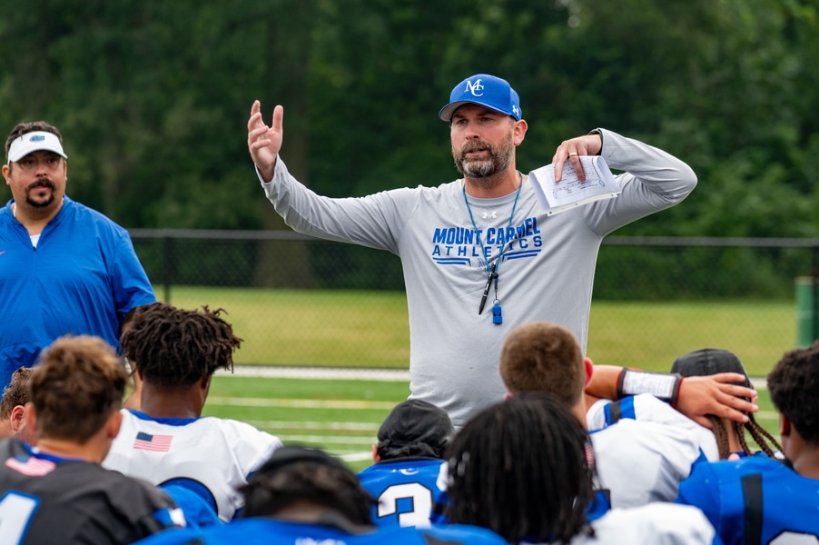 Football coaches eager to make a difference in new roles at Baltimore-area Catholic schools August 28, 2025By Gerry Jackson Filed Under: Feature, Local News, News, Schools, Sports As a young football coach looking to make an impact on players’ lives, Tyler Ward thinks he’s found the perfect spot. Since graduating from Lehigh University, the 33-year-old has coached college and high school football in Georgia, Alabama and Pennsylvania. When a job at Calvert Hall College High School in Towson came open this past winter, Ward pounced on the opportunity. After helping lead his alma mater, Calvert Hall, to an MIAA championship, coach Josh Ward will try to boost the program at Our Lady of Mount Carmel High School in Essex. (Kevin J. Parks/CR Staff) “It’s an elite school,” Ward said of the Towson institution guided by the De La Salle Christian Brothers. “I wanted to be some place where everything was done at the highest level.” Ward is among coaches at four area Catholic high schools who will be trying to get their new teams to the highest level. In addition to Tyler Ward, Richard Holzer will take over at Loyola Blakefield in Towson; Rich Stichel Jr. at Archbishop Curley High School in Northeast Baltimore; and Josh Ward (not related to Tyler Ward) at Our Lady of Mount Carmel School in Essex. When he was an assistant coach and recruiter at Lehigh and then Franklin & Marshall University, Ward got a firsthand glimpse of Calvert Hall’s program and the caliber of its students. “The sky’s the limit,” said Ward, a father of a 15-month-old with another on the way, who also is assistant athletics director and assistant dean of students. “We’re going to focus on the culture and the details. “You can’t just turn it on Friday nights,” the Charlottesville, Va., native said. “You have to do the little things right in the classroom and with everything else to truly be great. The first goal to winning is the mirror test. Calvert Hall has a great tradition with great athletes, and we’re going to try to be the best version of ourselves.” The Cardinals and the rest of the Maryland Independent Athletic Association “A” Conference have a tough road ahead to get past three-time champion Archbishop Spalding. New Loyola coach Richard Holzer also has led football programs at Mount St. Joseph, Northern (Calvert) and Meade high schools. (Kevin J. Parks/CR Staff) That’s the ultimate goal for Holzer with the Loyola Dons as well. Holzer is returning to the MIAA after four years at Northern High School where he led the Calvert County school to a 3A state championship in 2021. He previously compiled a 41-16 record in six seasons at Mount St. Joseph in Irvington, leading the Gaels to their first private school title since 1949. This time, rejoining the MIAA is “personal” for Holzer, whose 13-year-old son, Luke, will enroll at Loyola this fall with plans for 10-year-old Rhett to follow. “It’s special for us as a family,” said Holzer, who is a parishioner of Our Lady of Sorrows in West River along with his wife, Lauren. “It’s a little different this time around because of my sons. After moving around, this is a little personal for me. We chose the school for its culture and Jesuit environment. I get a chance to build the program around the Loyola values, knowing that my own kids will be coming through. “I’m looking forward to continuing what Coach (Anthony) Zehyoue and Coach (Blake) Henry started the past few years and getting us back to the championship level that Loyola was under with Coach (Joe) Brune and Coach (Brian) Abbott,” said Holzer, who will also teach health education at Loyola. “We want to build this into a consistent winner year after year.” Stichel, an educator for more than two decades, brings a veteran touch to Archbishop Curley. The McDaniel College graduate coached The John Carroll School in Bel Air to an MIAA B Conference title in 2012 and has had coaching positions at New Town, Loyola Blakefield and Calvert Hall. A teacher at Stemmers Run Middle School in Essex, Stichel is returning to Curley after serving as an assistant coach there 2009-13. He looks forward to bringing some coaching stability to the program and emphasizing what he calls a “true brotherhood” at Curley. Our Lady of Mount Carmel High School players gather for a prayer at football practice Aug. 7, 2025. (Kevin J. Parks/CR Staff) “We want to consistently pursue championships while emphasizing what Curley is all about – faith, service, discipline and accountability,” Stichel said. “Curley has a strong tradition, especially with its alumni participation, and we want to make that a strong part of the program. We have a strong core of players returning and expect to have a great season.” Josh Ward finds himself in a familiar situation at Mount Carmel. He spent the past four years at his alma mater Calvert Hall, helping the Cardinals to the 2021 A Conference title. Before that, though, he built the program at Concordia Prep in Towson into a program that annually contended for B Conference titles and eventually moved to the A Conference. The parishioner of St. Ignatius in Hickory considered taking a year away from coaching to help his wife Megan raise their 3-year-old daughter and twin 7-month-old sons. However, the lure of coaching at a rising athletic program such as Mount Carmel, which just won its first Baltimore Catholic League basketball title, proved irresistible. “As an alumnus, it broke my heart to leave Calvert Hall,” Josh Ward said. “The opportunity at Mount Carmel and the chance to build a program was so enticing. It’s a small community with a lot of history and a blue-collar approach. “I think we can build a consistent winner in the B Conference,” said Ward, who will also serve as the school’s director of advancement. “As a former college coach (a West Virginia Wesleyan assistant), it’s about getting kids to the next level. That’s how I se