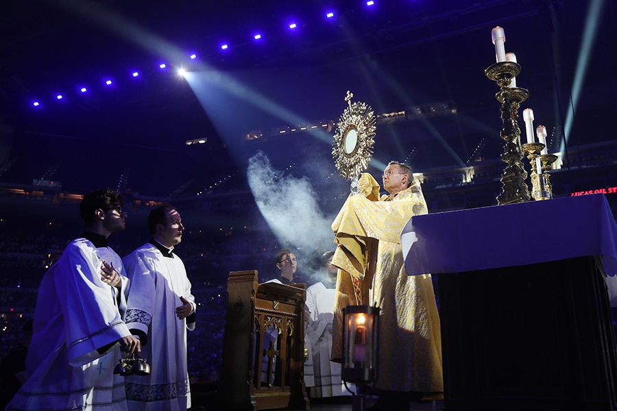For 3-year National Eucharistic Revival, the end is the beginning June 18, 2025By Maria Wiering OSV News Filed Under: Eucharist, Feature, News, World News The National Eucharistic Revival is formally slated to end June 22, this year’s feast of Corpus Christi. But, the three-year initiative — which included last year’s 10th National Eucharistic Congress and the 2024 and 2025 National Eucharistic Pilgrimages — laid the groundwork for more efforts to come, its leaders say. “The beauty of the revival is that the whole church in the United States focused on the Eucharist for a few years, and I do believe that had a powerful impact,” said Bishop Andrew H. Cozzens of Crookston, Minnesota, who led much of the revival’s efforts on behalf of the U.S. Conference of Catholic Bishops. National Eucharistic Congress Inc., a nonprofit organization in a partnership with the USCCB, expects to continue to build on the revival’s work through annual National Eucharistic Pilgrimages as well as diocesan, regional and national Eucharistic congresses. Organizers hope to hold the next National Eucharistic Congress in 2029, a proposal on which the U.S. bishops are expected to vote when they meet in November. Bishop Robert E. Barron of Winona-Rochester, Minnesota, first proposed the idea of a National Eucharistic Revival to the USCCB after the Pew Research Center reported in 2019 that only one-third of Catholics believed the church’s teaching that the consecrated bread and wine were truly Jesus’ body and blood. At the time, Bishop Barron was chairman of the USCCB’s Committee on Evangelization and Catechesis. Bishop Andrew H. Cozzens of Crookston, Minn., chairman of the board of the National Eucharistic Congress Inc., blesses pilgrims July 17, 2024, during adoration at the opening revival night of the 10th National Eucharistic Congress at Lucas Oil Stadium in Indianapolis. (OSV News photo/Bob Roller) In November 2021, the bishops voted overwhelmingly in favor of the 2022-2025 revival initiative, including a National Eucharistic Congress, making it an effort of its Secretariat of Evangelization and Catechesis. At the same meeting, they approved a new document on the Eucharist underscoring its centrality to the Catholic faith. By then, Bishop Cozzens had succeeded Bishop Barron as the chairman of the Committee on Evangelization and Catechesis. “The Scripture verse that has kept coming to me over and over is from St. Paul: ‘The power now at work in you is able to do immeasurably more than you asked or imagined.’ And that’s been my experience of the Eucharistic revival,” Bishop Cozzens told OSV News, referring to Ephesians 3:20. “God did immeasurably more than I have asked or imagined. I knew that the Holy Spirit was in the idea, but I didn’t expect to see it take off in the way that it did, in terms of engagement across the country.” The National Eucharistic Congress Inc. nonprofit formed in 2022 to support the bishops’ vision for the congress and accompanying National Eucharistic Pilgrimage, with several bishops on its board and Bishop Cozzens as its chairman. The organization has been a key collaborator for the revival as a whole, and “they’re poised now to carry forward the work of Eucharistic renewal,” said David Spesia, executive director of the USCCB’s Secretariat of Evangelization and Catechesis. The revival’s guiding phrase has been “that we would have a movement of Catholics who have been healed, converted, formed and unified, and then sent on mission,” Spesia told OSV News. “Bishop Cozzens spent a couple of years saying, ‘We’re not starting a program, we’re starting a fire.’ … It’s not to say there isn’t a lot of work left to be done, but I think there’s awareness that OK, missionary discipleship rooted in a living relationship with Jesus in the Eucharist is what we all need, it’s what we all want, it’s what we’re all called to. “And,” he added, “we’re all sent on mission, and I think the mission awareness maybe is going to be the greatest long-term fruit of the revival.” While Bishop Cozzens has been credited for his leadership of the revival, he thinks of himself more as its “cheerleader,” he told OSV News. “The bishops engaged it at every level, and that’s what made it really successful, and then also God’s mercy and goodness in his Holy Spirit working through it.” In 2022, Georgetown University’s Center for Applied Research in the Apostolate revisited the topic of Catholics’ belief in the Real Presence with a more nuanced survey. It found almost two-thirds of Catholics believe in the Real Presence, but only 17% of Catholic adults attend Mass at least weekly. “One simple goal we had was that every Catholic in the pew would know we were having a revival,” Bishop Cozzens said. “I think we pretty much got to that — like, if you’ve been going to Mass for the past three years, you heard about this revival. Even just that means the church has been strengthened and that the church is experiencing some type of renewal in her Eucharistic faith. “Now, moving the numbers of the Catholics who don’t go to Mass or the Catholics who are minimally attached to Mass — that’s a generational work, which is why we want to see some of this work continue in a different way,” he added. “To move those numbers is going to take time, and that’s part of the whole movement of the church in the United States from maintenance to mission. But we began, and we invited the whole church to think about that powerfully through the Eucharist and revival.” Revival efforts included the development of catechetical resources and the training of both lay leaders and clergy to articulate the truth of the Eucharist and how that impacts Catholics’ lives. April 2022 saw the commissioning of 58 Eucharistic preachers — priests formed during a retreat to give missions at parishes around the United States. That same retreat 