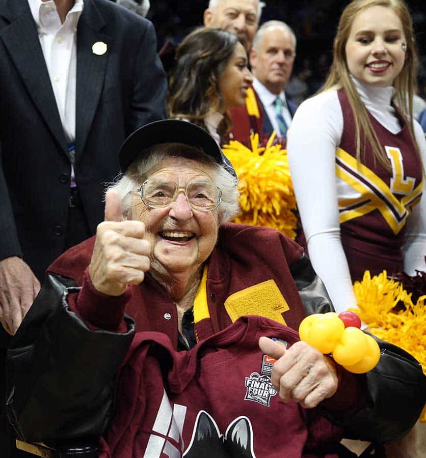 From Final Four fame to 106: Sister Jean still cheering Loyola on September 6, 2025By John Knebels OSV News Filed Under: Consecrated Life, News, Sports, World News It’s been more than seven years since Sister Jean Dolores Schmidt became a household name virtually overnight. Then — five months shy of turning 99 — Sister Jean captured the hearts of college basketball fans when, as team chaplain, she inspired Loyola University of Chicago to a Final Four berth in the 2018 NCAA men’s basketball tournament. Known for her constant positivity and even offering strategic game-day suggestions, she was quickly embraced by appreciative players and staff as an honorary assistant coach. Loyola Ramblers fans hold up a poster of Sister Jean Dolores Schmidt, longtime chaplain of the men’s basketball team, after the team defeated the Kansas State Wildcats in the championship game of the South regional of the 2018 NCAA Tournament in Atlanta. (OSV News photo/Dale Zanine-USA TODAY Sports via Reuters) Seven years later, the sister of Charity of the Blessed Virgin Mary, who entered the order in 1937, continues to elevate the hearts and minds of the young and old alike. On Aug. 21, Sister Jean celebrated her 106th birthday. Still officially listed as team chaplain but no longer able to attend most games due to health issues, the former high school basketball player from San Francisco’s St. Paul’s High School shared a heartfelt but practical message on Loyola’s website. She thanked supporters for standing by her through a nine-decade ministry of education, civil rights awareness, spiritual guidance, and outspoken advocacy for love, service and gratitude. Apologizing for her absence, she encouraged the Loyola community to “enjoy the treats and the new Sr. Jean pin.” Then, turning to the students, she offered her trademark encouragement: “Make new friends. Talk to your old friends. Enjoy your move-in and your preparations for class,” she said. “I will be with you in spirit and love and prayer. These things are very important in your life as you adjust to your new ‘home away from home’ at Loyola University. “Your parents have entrusted you to our care. We appreciate that trust. We know that you will live by it and that you will become the people that you want to be, the people that God has decided you will be. Yes, you have to be yourself.” Recognizing her nearly three decades at Loyola as “wonderful,” she urged students to let their faith guide their future: “Let your dreams become reality,” she said. “Don’t let anybody stop you. You are the future leaders of our churches, our schools, our country, and our world.” Sister Jean Dolores Schmidt, longtime chaplain of the Loyola University Chicago men’s basketball team and campus icon, gives a thumbs up after the team defeated the Nevada Wolf Pack in the semifinals of the South regional of the 2018 NCAA Tournament. (OSV News photo Brett Davis-USA TODAY Sports via Reuters) Loyola president Mark Reed described her ongoing impact, highlighting that the community celebrates “not only this remarkable milestone, but also the wisdom, hope, and joy Sister Jean shares so generously with us,” Reed said. “Her ministry of presence has touched thousands of lives — students, faculty, staff, alumni. We are deeply grateful.” Her birthday brought thousands of greetings from around the world, including many from abroad. Messages poured in through Loyola’s board, Facebook and even sports platforms. One admirer shared, “You inspired me to have a career helping people be healthy in mind and body.” Another revealed she had been named after Sister Jean. A 2018 Loyola graduate cited the aforementioned basketball season with a simple, “You had a direct line to God.” That legendary 2018 tournament still stands as a highlight of Sister Jean’s ministry of presence. Entering the NCAA playoffs as an 11-seed, Loyola stunned the basketball world with dramatic upsets over Miami, Tennessee and Nevada by a collective four points before defeating Kansas State to reach the Final Four for the first time since their 1963 national championship season. Though their storybook run ended against Michigan, it felt to many like something greater than basketball was at work. Since then, Sister Jean’s influence has only grown. From a Sister Jean bobblehead that fetches hundreds of dollars online to “Sister Jean pins” and her bestselling memoir, “Wake Up With Purpose,” tangible reminders of her legacy surround the Loyola community. In Loyola’s Gentile Arena, a banner hangs as a tribute to both her spirit and the program she loves. Its unequivocal message is short and clear: “Worship, Work, Win.” Read More Sports Archbishop Curley’s 1975 soccer squad defied the odds – and Cold War barriers Calvert Hall holds off Loyola Blakefield to claim a 28-24 victory in the 105th Turkey Bowl White Sox co-owner says pope told him he’d ‘love to’ throw a season opening pitch in future 5 Things to Know about the 2025 Turkey Bowl Sportsmanship and the season of our discontents Faith, not fame, defines life for Toronto Blue Jays first-base coach from Severna Park Copyright © 2025 OSV News Print