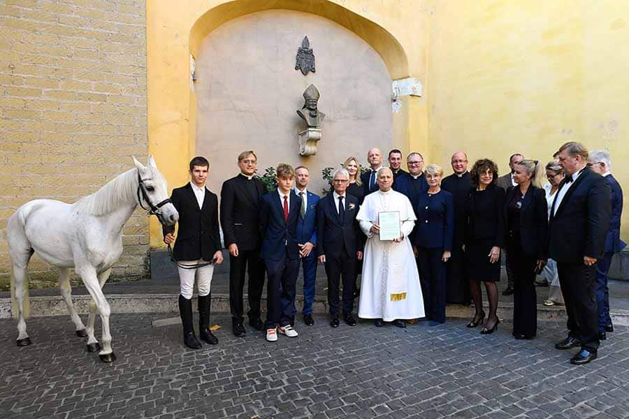 From Poland with love: Pope Leo reins in a royal Arabian gift October 15, 2025By Paulina Guzik OSV News Filed Under: Feature, News, Sports, Vatican, World News At his Wednesday morning general audience, Pope Leo’s face lit up with an unusually bright smile receiving a unique donation: Proton, a purebred Arabian horse from a prestigious Polish stable. “When I saw your Holiness on a horse in Peru, I immediately took action!” Andrzej Michalski exclaimed after he, his son and nephew greeted the pope Oct. 15 at the Vatican, before giving him the striking white stallion. Pope Leo XIV poses for a photo as he receives a purebred Arabian horse donated by a Polish horse breeder at the Vatican Oct. 15, 2025. The pope often traveled by horse when serving as a missionary in Peru. (CNS photo/Vatican Media) The gift is indeed unusual — Proton’s father came from the United States, and his mother was bought from a princess in Jordan. The horse was born in Janów Podlaski, Poland’s most prestigious Arabian horse breeder, and raised by Michalski in seaside Kolobrzeg in northwestern Poland, where he spent 11 years in a family-run stable. “The Holy Father loves horses, because he rode for miles in Peru and is an excellent horseman,” Michalski told OSV News. “When I learned about this, it immediately dawned on me. The Holy Spirit came, and I immediately had the idea and began implementing the procedure to give the Holy Father a horse.” And Proton is no ordinary horse. It’s “one that Pope Leo would be completely satisfied with,” Michalski said. He is “a calm, yet beautiful horse,” Michalski said, “because, as we know, Arabians are the most beautiful.” Receiving the unusual gift, Pope Leo smiled widely. “He was very happy. He touched us all. He didn’t even want to part with it for long. We accompanied the horse to his popemobile, together with the Holy Father,” Michalski recalling the special moment, adding that “if the popemobile ever broke down, he could ride his horse into St. Peter’s Square.” The Michalski Stud Farm is owned by a devout Catholic family — one of the show jumping venues is even named after St. John Paul II. Besides prestigious competitions, the Michalski family organizes horseback riding therapy sessions called hippotherapy. Michalski said that if not for it being the general audience, “Pope Leo said he would happily jump on the horse,” and he is “planning to visit Castel Gandolfo to ride with the Holy Father” as “the pope said there is much more space there than in the Vatican.” That’s where Proton headed to after the Wednesday audience — the Castel Gandolfo stables. Read More Vatican News Pope Leo is first pontiff to go to St. Charbel’s tomb; visit is source of ‘great joy’ for Lebanon Pope tells reporters dialogue is always the answer to tense situations Choose the way of peace, pope says as he leaves Lebanon Lebanese have what is needed to build a future of peace, pope says Love without fear, pope tells Lebanese church workers Pope urges Lebanese not to give up on peace or each other Copyright © 2025 OSV News Print