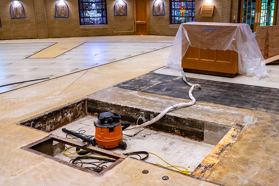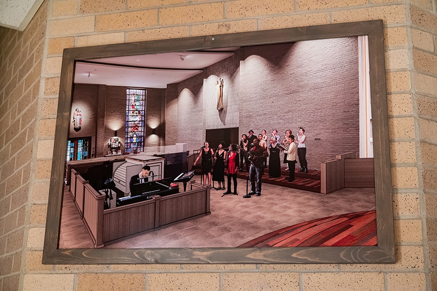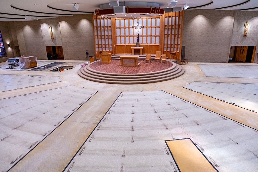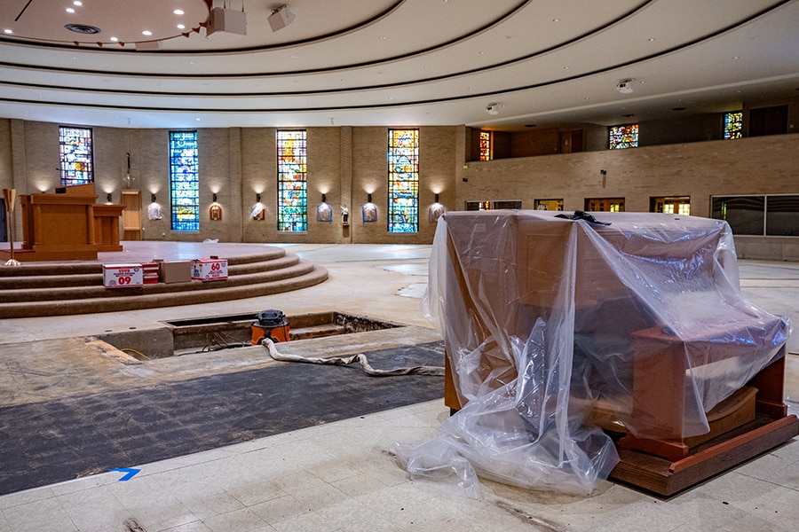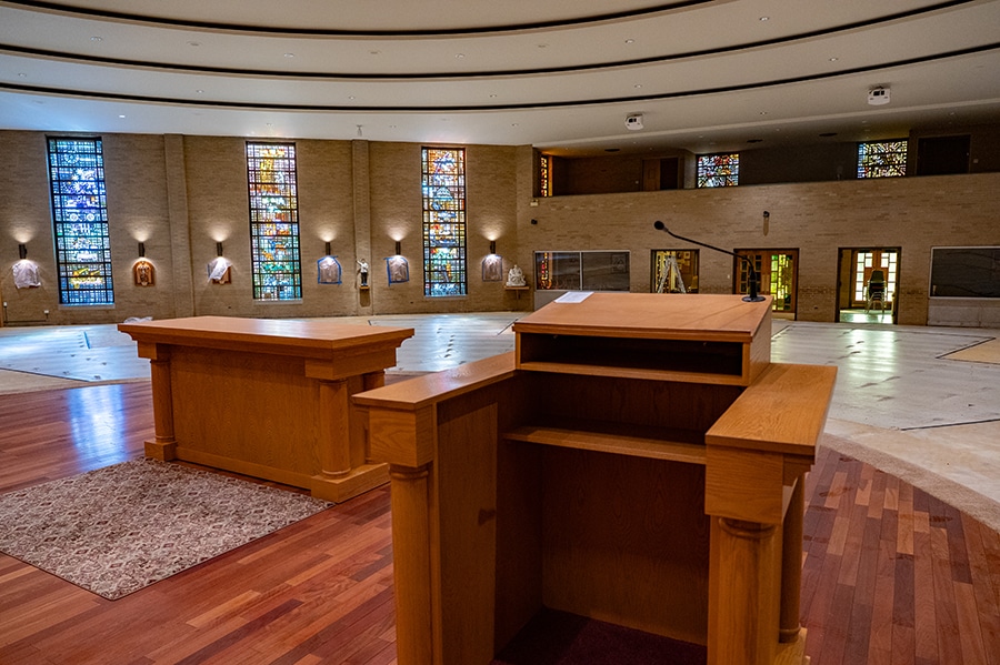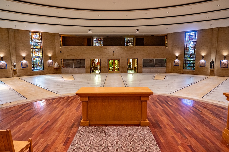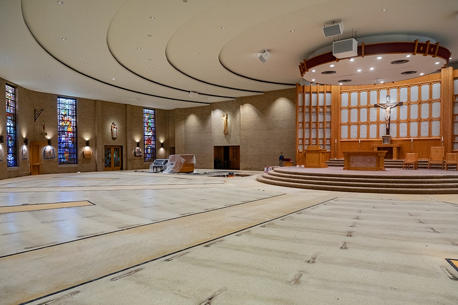 Fullerton church begins renovations June 19, 2025By Katie V. Jones Catholic Review Filed Under: Feature, Local News, News FULLERTON – Renovation work is well underway at St. Joseph Church in Fullerton, where a sweeping interior transformation of its more than 50-year-old sanctuary began in early June. Pews have been removed, carpeting torn up and construction crews are preparing the space for an upgrade parish leaders say reflects both practical needs and a renewed spiritual focus. Over the remainder of the summer, the sanctuary will receive a comprehensive facelift: interior and exterior painting, new flooring, energy-efficient LED lighting and protective Plexiglass coverings for the church’s stained-glass windows. It’s all part of the second phase of the parish’s $2.5 million capital improvement campaign, “Building on the Past with Hope to the Future.” The first phase wrapped up last fall with the installation of a new $1.25 million HVAC system. “It lived twice as long as it should have,” said Father Jesse Bolger, pastor of St. Joseph, referring to the old unit. He also noted the deteriorating state of the sanctuary: cracked pews, worn carpeting and lingering effects from the COVID-19 pandemic. “Another incentive was returning from COVID,” he said. “It is another sense of new life.” In spring 2023, parish leaders made the decision to move forward with sanctuary renovations. A capital campaign committee was formed, and a parishioner contributed architectural services pro bono. While there were varying opinions on some elements, Father Bolger said the parish ultimately reached a shared vision. One of the most significant changes will be the replacement of the wooden altar, ambo and tabernacle stand with new fixtures made of Jerusalem limestone. “We think it is going to create a focus in the sanctuary in more of a direct way than in the past,” Father Bolger said. “It was quarried where our Lord walked. It is a beautiful continuity with our salvation.” The altar will also be repositioned closer to the center of the church’s circular layout, allowing space for a small reredos behind the tabernacle. “It will give some permanence,” Father Bolger explained. “As Catholics, we can hold multiple realities in our hands. The focus on the altar and Jesus’ presence in the tabernacle. Every one of us carries the Trinity within us.” The parish’s vibrant and diverse music program – which includes classical, Filipino, African, contemporary and youth choirs – also played a role in the sanctuary’s redesign. An expanded area for musicians and the installation of risers aim to enhance both visibility and acoustics. The church organ has been returned to its original pit. “They used to have not a lot of space and sing in front of the first pew,” Father Bolger said. “Now it is a nice configuration.” Generous support from a core group of families enabled the first phase of the campaign to reach $1 million by fall 2023. So far, the parish has raised $2.1 million in pledges toward its total $2.5 million goal. While construction continues, Mass is being celebrated in the parish center, where a temporary sanctuary has been created on the stage. Father Bolger hopes to return to the church in time to celebrate Mass in the renovated sanctuary on September 28. St. Joseph has also welcomed new members in recent months, including families from parishes closed during the Archdiocese of Baltimore’s Seek the City to Come planning initiative. Father Bolger hopes the renewed worship space will meet their needs. “We are very excited,” he said. The updated sanctuary, he added, is intended to serve “as a place of renewal, grace and purpose” for both long-standing parishioners and new arrivals. Email Katie V. Jones at kjones@CatholicReview.org Click below to view more photos: St. Joseph Church in Fullerton is undergoing a multi-million dollar refurbishment, which includes new pews, flooring, and painting. The project is expected to be completed by late September. (Kevin J. Parks/CR Staff) Pews and flooring have been removed in the early stages of a summer-long refurbishment at St. Joseph Church in Fullerton. The parish is undergoing a multi-million dollar project, which also includes painting and a redesigned music ministry area. The project is expected to be completed by late September. (Kevin J. Parks/CR Staff) The organ at St. Joseph Church in Fullerton sits off to the side as the parish undergoes a multi-million dollar refurbishment, which includes new pews, flooring, painting and redesigned music ministry area. The project is expected to be completed by late September. (Kevin J. Parks/CR Staff) St. Joseph Church in Fullerton is undergoing a multi-million dollar refurbishment, which includes new pews, flooring, and painting to name a few. The project is expected to be completed by late September. (Kevin J. Parks/CR Staff) The organ at St. Joseph Church in Fullerton has been removed from its original pit in preparation for a redesigned music ministry area, as the parish begins a multi-million dollar refurbishment, which also includes new pews, flooring, and painting. The project is expected to be completed by late September. (Kevin J. Parks/CR Staff) The ambo and altar at St. Joseph Church in Fullerton wait patiently for late September when the parish is scheduled to compete a multi-million dollar refurbishment, which includes new pews, flooring, and painting to name a few. (Kevin J. Parks/CR Staff) Votive candles that once sat in the sanctuary at St. Joseph Church in Fullerton have been temporarily moved to the family rooms in the back of church. The parish has begun a multi-million dollar refurbishment, which includes new pews, flooring, and painting to name a few. The project is expected to be completed by late September. (Kevin J. Parks/CR Staff) A rendering of the new music ministry area at St. Joseph Church in Fullerton is on display in the church’s n