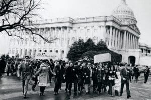 The 1977 march was more boisterous than usual thanks to, not in spite of, temperatures hovering around 20 degrees Fahrenheit. It was held on a Saturday, which undoubtedly improved attendance, but since congressional offices were closed, the lobbying effort was useless.