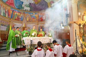 Cardinal Pizzaballa remained in Gaza City until July 20, and said Sunday morning Mass in the parish church. Pictures posted on parish’s Facebook showed him taking pictures with parishioners, clearly comforted by his presence, and videos circulating on social media also showed him playing with parish children.