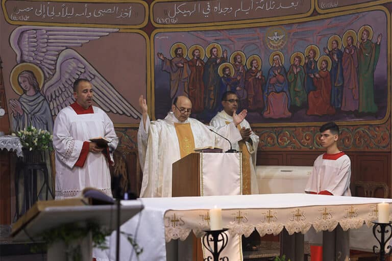 Gaza’s Christian community persevering amid hardship and hope July 14, 2025By OSV News OSV News Filed Under: Conflict in the Middle East, News, World News GAZA CITY, Gaza Strip (Vatican Media) — The parish priest of Gaza Strip’s small Christian community admitted his flock is exhausted by war and a severe lack of food. The priest spoke to Vatican Radio amid tragedy after tragedy unfolding in the enclave, with at least 32 people killed by Israeli strikes only on July 13, including six children at a water collection point. The Israeli military said it was targeting a militant but a technical error made its munitions fall “dozens of meters from the target,” The Associated Press reported. While small children and teenagers leaned over body bags in tears to say goodbye to their friends and relatives, a Palestinian surgeon was also killed in the strikes. Ahmed Qandil, who specialized in general surgery, had been on his way to Al-Ahli Arab Baptist Hospital when he was killed, Gaza’s Health Ministry spokesman confirmed to AP. A Palestinian Christian prays during Mass at Holy Family Church in Gaza City, after the death of Pope Francis was announced by the Vatican, April 21, 2025. (OSV News photo/Dawoud Abu Alkas, Reuters) Father Gabriel Romanelli, pastor of the Holy Family Parish, asked not to be forgotten and for continued prayers, which he called an unending source of hope. He told Vatican Radio that basic goods reached unimaginable prices and that they’re almost impossible to find due to blockade of humanitarian aid. He said flour reached the price of $11 per pound, tomatoes are $13 per pound and a single onion costs between $14 and $17. A pound of sugar is $50, he said. “But coffee, bitter or not, is out of reach entirely: it goes for no less than 250 Euros per kilo,” or almost $300 for 2 pounds. “Let me be clear, these prices are almost theoretical,” he said. “Before we talk about paying for anything, we need to find it. And that is nearly impossible. When available, we rely on small makeshift wartime gardens, tended by impromptu farmers. But these are becoming increasingly rare, as most of the population has fled toward the south of Gaza.” When asked what people are managing to eat in these difficult times, Father Romanelli said that the aid they had stored during the truce “allowed us to sustain ourselves for the past few months, and even to help several Muslim families living in the neighbourhood of the parish. But after Israel halted humanitarian aid on March 3, nothing else has arrived. Since then, we’ve had to keep what remains for ourselves — and even then, we are rationing it carefully.” Most of the homes near the Holy Family Parish compound are now empty. Father Romanelli said. “All around us, there is only death and destruction. Day and night, we live with the sound of bombs falling, sometimes just a few hundred meters from the church. It is surreal, but after 21 months, these terrible explosions have become part of our daily routine.” The Christian community of the Holy Family Parish now numbers around 500, Father Romanelli said. “We are camped out in every corner of the parish grounds. Before October 7, there were 1,017 Christians in Gaza. Around 300 managed to leave when the Rafah crossing to Egypt was still open. Fifty-four have died,” he said, including those who were killed in the bombing of St. Porphyrius Greek Orthodox Church in October 2023. “Among our own faithful, elderly musician Elham Farah was killed in November 2023,” Father Romanelli told Vatican radio. A month later an Israel Defense Forces sniper shot and killed Nahida Khalil Anton, and her daughter, Samar Kamal Anton, as they walked to a convent at the Holy Family compound in Gaza. The convent of the Missionaries of Charity also was targeted. Palestinian Christians attend Mass at Holy Family Church in Gaza City after the death of Pope Francis was announced by the Vatican, April 21, 2025. (OSV News photo/Dawoud Abu Alkas, Reuters) “Others died due to the war itself — those suffering from heart disease, diabetes, and other conditions who no longer had access to vital medications. There are still about 50 disabled individuals and sick children being lovingly cared for by the Missionaries of Charity, the sisters of Mother Teresa,” the priest said. Father Romanelli acknowledged the deep fatigue and anxiety that have settled over the community: “We feel almost entirely alone in this area. The only thing that keeps us together and gives us hope is prayer,” which, he admitted, “prevents us from falling into despair.” Expressing his gratitude for publishing reports on Vatican Media news websites that allow “more people to understand what we are living,” Father Romanelli also expressed grateful memories of the phone calls Pope Francis gave him almost every night, when he was still in good health. “The nightly phone calls from Pope Francis were a tremendous source of strength,” he said. “To know that we are just a small part of something much greater — the universal Church — and to know that over a billion Christians around the world are praying for this small, suffering community, gives us extraordinary resilience. Food, medicine, and fuel are as essential to us as prayer itself. Without prayer, ours and yours, we would not have made it this far. We are counting on you.” Meanwhile on July 7, Israel’s defence minister Israel Katz laid out plans to force all Palestinians in Gaza into a camp on the ruins of Rafah. The plan was since described by legal experts and academics as a “blueprint for crimes against humanity,” The Guardian reported. Asked about the plans laid out by Katz, former Israeli Prime Minister Ehud Olmert told the British newspaper that “It is a concentration camp. I am sorry.” “If they (Palestinians) will be deported into the new ‘humanitarian city,’ then you can say that this is part of an ethnic cleansing,” Olmert 