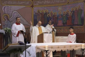 “We are camped out in every corner of the parish grounds. Before October 7, there were 1,017 Christians in Gaza. Around 300 managed to leave when the Rafah crossing to Egypt was still open. Fifty-four have died,” he said, including those who were killed in the bombing of St. Porphyrius Greek Orthodox Church in October 2023.