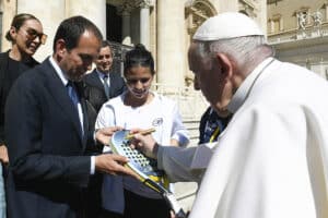 Pope Francis encouraged them to serve others with “God’s style,” that is with closeness, compassion and tender love so that “God’s loving mercy becomes visible, and the fabric of society is strengthened and renewed.”