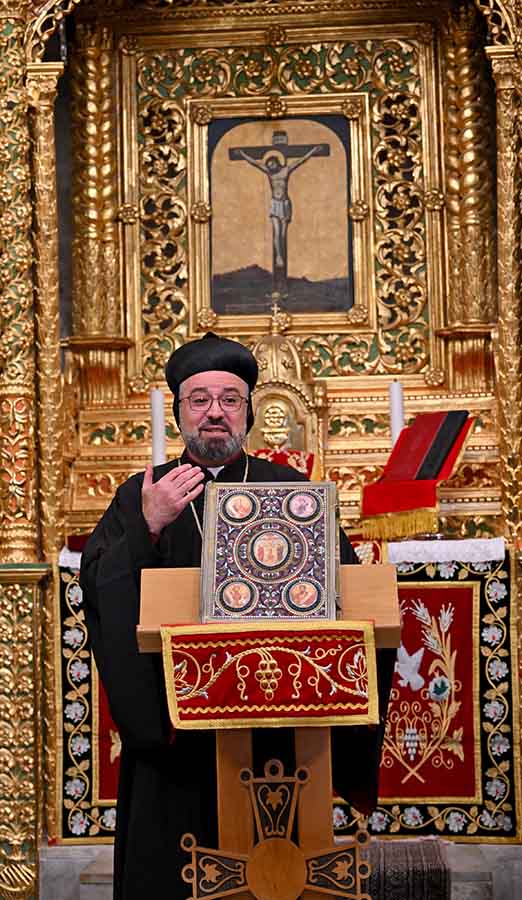 Historic altar at St. Mark’s monastery in Jerusalem unveiled for first time in 350 years January 13, 2026By Judith Sudilovsky OSV News Filed Under: Arts & Culture, News, World News JERUSALEM (OSV News) — The historic altar of the Syriac Orthodox Patriarchal Monastery of St. Mark in Jerusalem has been unveiled for the first time in nearly 350 years, following an extensive restoration. The Jan. 11 reveal showcased intricate gold-leaf details and baroque decorations long hidden beneath layers of damage and past repairs. It was unveiled in front of members of the community and diplomats after two years of work by a team of Mexican restoration experts from the María Visión Mexican Catholic TV channel. Archbishop Mor Anthimos Jack Yakoub, the Syriac Orthodox patriarchal vicar for Jerusalem, Jordan and the Holy Land, speaks to guests and the media in front of the restored ancient altar in the Syriac Orthodox Patriarchal Monastery of St. Mark in Jerusalem Jan. 11, 2026, after an intensive two-year restoration process. (OSV News photo/Debbie Hill) Archbishop Mor Anthimos Jack Yakoub, the Syriac Orthodox patriarchal vicar for Jerusalem, Jordan and the Holy Land, said the completion of the work by the five-man team was nothing short of a miracle and included an eight-month break following the Oct. 7, 2023, Hamas attack on southern Israeli communities and the ensuing two-year war. According to Syriac Orthodox tradition, the monastery is the site of the house of Mark, where Jesus instructed Peter and John to prepare the Passover meal and is believed to be the location of the Upper Room where the Last Supper, washing of the disciples’ feet, post-Resurrection appearances, and Pentecost occurred, strengthening the first church, he noted. “From here the first church was strengthened and the Gospel went forth to all peoples by the power of the Spirit. Today we inaugurate a historical wooden structure that is far more than an artistic masterpiece,” Archbishop Yakoub said. The community had long wanted to restore the altarpiece, whose vibrant color had unwittingly been muted by chemical gold spray long ago by unknown work. An inscription at the top of the altar attests to the last official restoration having taken place in 1733, and Archbishop Yakoub said that studies of the altar have shown that it may be 400 years old. The unique work is distinguished by gilded wooden intricate eastern floral decorations, slender columns with small arches and capitals. Its carvings are like “silent prayers,” the archbishop said. Tests by an Italian restoration team working on restoration at the Church of Nativity revealed the original gold leaf, silver leaf and the beautiful colors beneath. Crucially, however, the altarpiece was also found to be infested with termites and predicted to collapse within a year without intervention. The price tag for the restoration work — almost half a million euros, or almost $600,000 — was however too steep for the small community. A “providential encounter” with Emilio Burillo, director general and founder of María Visión television, during a Christian unity prayer event streamed from St. Mark, opened the doors to a “miracle of providence,” Archbishop Yakoub said, and Burillo committed the restoration team of María Visión to the work needed free of charge. María Visión supports a workshop in Mexico that restores sculptures and paintings for churches for free. Beyond the altarpiece, the project included the church’s holy altar, its decorations and domes, all church icons and their frames, the episcopal throne, the baptistery and its dome, and two wooden cabinets added in 1851, as well as the restoration of the Miraculous Icon of the Virgin Mary, which according to the Syriac Orthodox tradition was painted by St. Luke. The restoration required “devotion and precision,” said Archbishop Yakoub, and the structure was meticulously dismantled, documented, treated, restored and reassembled piece by piece. While no written information or documentation exists about the origin or craftsmen who created the original altarpiece, restorer Carlos Lozoya said they believe the baroque-style altar was designed and made by European craftsmen because of its unique style which combines a Catholic-style altarpiece together with a Middle Eastern-style “Iconostasio.” All the restoration was conducted on site, and a unique gold-leaf frame was especially created in Mexico for the Miraculous Icon of the Virgin Mary, which depicts the Virgin Mary holding baby Jesus, and brought to Jerusalem. Prior to that, the icon was displayed in the chapel underneath the church with no glass covering and was damaged by years of dust and smoke from candles placed next to the icon, which had never been restored before, he said. Though the community’s tradition holds that the icon was painted by St. Luke in the first century, the restoration team has sent samples to experts in Madrid for a better sense of the icon’s age — and results should be coming later in January, said Lozoya, who as an expert in painting restoration worked alone on the icon’s two-month-long restoration process. “(The icon) was very, very dark and almost lost the image of the child,” he said. After careful testing they were able to determine the best chemical combinations to strip off the extra layers of varnish, dirt and grime to reveal the original colors underneath, without damaging the icon, Lozoya said. The community was initially surprised by the extent of the restoration and is now very happy with the outcome, he said, having been kept informed throughout the process. “It was really a challenge to make the restoration because it’s the most important piece of this monastery because (the community) believes that St. Luke painted this Virgin Mary, and of course, it has real value as a painting,” he said. A devout Catholic, Lozoya said he felt the hand of Mary guiding him as he restored the revered 