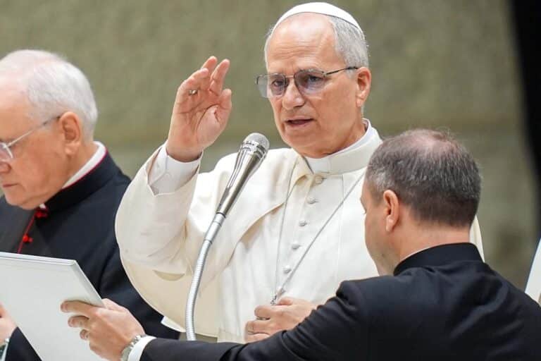 Hope is knowing God is near and love will win, pope says August 27, 2025By Cindy Wooden Catholic News Service Filed Under: News, Vatican, World News VATICAN CITY (CNS) — Christian hope is not about avoiding pain and suffering but about knowing that God gives people the strength to persevere and to love even when things go wrong, Pope Leo XIV said. When Jesus allowed himself to be arrested in the Garden of Gethsemane, he showed that “Christian hope is not evasion, but decision,” the pope told thousands of people gathered in the Vatican audience hall Aug. 27 for his weekly general audience. “The way that Jesus exercised his freedom in the face of death teaches us not to fear suffering, but to persevere in confident trust in God’s providential care,” the pope said in his address to English speakers. “If we surrender to God’s will and freely give our lives in love for others, the Father’s grace will sustain us in every trial and enable us to bear abundant fruit for the salvation of our brothers and sisters,” he said. A person of faith, the pope said, does not ask God “to spare us from suffering, but rather to give us the strength to persevere in love, aware that life offered freely for love cannot be taken away by anyone.” Jesus lived every day of his life as preparation for the “dramatic and sublime hour” of his arrest, his suffering and his death, the pope said. “For this reason, when it arrives, he has the strength not to seek a way of escape. His heart knows well that to lose life for love is not a failure, but rather possesses a mysterious fruitfulness, like a grain of wheat that, falling to the ground, does not remain alone, but dies and becomes fruitful.” Naturally, Pope Leo said, Jesus “is troubled when faced with a path that seems to lead only to death and to the end. But he is equally persuaded that only a life lost for love, at the end, is ultimately found.” “This is what true hope consists of: not in trying to avoid pain, but in believing that even in the heart of the most unjust suffering, the seed of new life is hidden,” he said. After spending more than 90 minutes greeting people in the audience hall, including dozens of newlywed couples, Pope Leo went into St. Peter’s Basilica, where hundreds of people who did not get a place in the hall had been watching the audience and waiting for their turn to see the pope. The pope thanked them for their patience, which, he said, “is a sign of the presence of the Spirit of God, who is with us. So often in life, we want to receive a response immediately, an immediate solution, and for some reason God makes us wait.” “But as Jesus himself taught us, we must have that trust that comes from knowing that we are sons and daughters of God and that God always gives us grace,” the pope said. “He doesn’t always take away our pain or suffering, but he tells us that he is close to us.” Read More Vatican News Though Nicaea is a ruin, its Creed stands and unites Christians, pope says A little leaven can do great things, pope tells Turkey’s Catholics Catholic filmmaker investigates UFO mysteries at the Vatican Tennessee teen’s letter to Pope Leo brings a reply with gift of special rosary blessed by him Pope arrives in Turkey giving thanks, preaching peace Lebanese long for peace ahead of Pope Leo’s visit Copyright © 2025 Catholic News Service/U.S. Conference of Catholic Bishops Print