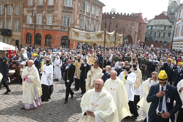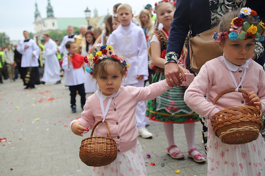 Hundreds of thousands march in Poland’s Corpus Christi processions June 20, 2025By Katherine Ruddy OSV News Filed Under: Eucharist, Feature, News, World News KRAKOW, Poland — In Catholic Poland, Corpus Christi is more than a feast — it’s a nationwide act of faith. On June 19, cities, towns and villages held solemn Eucharistic processions, publicly professing belief in Christ’s real presence in the Eucharist. The centuries-old tradition includes flower-strewn paths, children in white scattering petals and stops at four altars representing the Gospels. “Corpus Christi” (“Body of Christ”) is the Latin name of the Solemnity of the Most Holy Body and Blood of Christ. It is one of the most important holidays in the liturgical calendar of the Catholic Church, during which the faithful publicly profess their faith in the real presence of Jesus Christ in the Eucharist. It is celebrated on the Thursday following the Trinity Sunday and in some countries — including the U.S. — on the Sunday following that feast. The feast was established in 1264 by Pope Urban IV, and the first celebrations took place in Liège, now Belgium, where St. Juliana had a vision demanding a separate feast in honor of the Eucharist. In Poland, Corpus Christi has been celebrated since the 14th century and is exceptionally solemn. The central point of the celebrations are Eucharistic processions, during which the faithful express their faith by following the Blessed Sacrament carried by a priest. In Poland, in centuries-old tradition, the procession is accompanied by the singing of Eucharistic hymns, children scattering flowers, and routes decorated with banners and colorful flower carpets. Girls in traditional Polish attire throw flower petals as they take part in a Corpus Christi procession June 8, 2023, in Krakow. On June 19, 2025, cities, towns and villages held solemn Eucharistic processions, publicly professing belief in Christ’s real presence in the Eucharist on the feast of Corpus Christ. (OSV News photo/courtesy Archdioceses of Krakow) “Parishioners lay them out as an expression of homage to Christ present in the host,” said Mariola Drapala, from Czestochowa, who was taking part in her parish procession this year, having walked the central procession in the city of the famed Black Madonna — 1 mile from the city’s cathedral to Jasna Góra Marian shrine — for over five decades. “It’s a witness to faith that our parents passed to us, and we were trying to pass to our children, who were sometimes a bit grumpy because of the heat and tiredness, but it was important that they learn that faith needs to be joyfully manifested,” she told OSV News. The procession stops at four altars, each symbolizing one of the four Gospels and serving as a station for contemplating the Word of God. It is also an image of the four corners of the world, to which Christ’s message is carried, as a sign of the universality of the Gospel and the presence of God among people. Cardinal Grzegorz Rys of Lódz told OSV News that “the most beautiful image of the church is that we follow Jesus as his church and listen to his word.” These four Corpus Christi altars, he said, “show the church following Jesus in order to listen, to listen to his word. The second important aspect of this special day is that when we listen, we are not to be closed off in the sacristy, in isolation. We are to have the courage to bear witness, and we are to do so with our own conviction.” The cardinal said that “God — Jesus — is important hidden in the monstrance, and important in the community, the community of wandering people.” St. Paul, the cardinal explained, in his First Letter to the Corinthians, “says that part (of him) belongs to the body of Christ in the Eucharist and (part) to the body of Christ, which is the church. Once a year, we can show ourselves with Jesus in public. So let’s go out!” Father Eugeniusz Ploch of Holy Spirit Parish in Opole told OSV News as he prepared to march with his parishioners June 19: “This is a day that is a great opportunity to remind ourselves that God is truly present among us in the Eucharist, that he wants to be with us, where we are, in our everyday lives. Jesus says: ‘Give them something to eat.’ … I understand that in these words God is saying: ‘I need you!'” Corpus Christi celebrations in many places in Poland attract crowds of the faithful — from children in first Communion outfits throwing flowers along the route of the Eucharistic procession to entire families and elderly people. In many places, the celebrations are particularly solemn, with the participation of orchestras, guards and local parish groups. Other countries in Europe also celebrate with their own local processions. Cardinal Rainer Maria Woelki of Cologne, Germany, is preparing his archdiocese for a special anniversary. In a pastoral letter published on June 17, he pointed out that the world’s first Corpus Christi procession took place in Cologne in 1279, and that the 750th anniversary this procession will be celebrated in 2029. “For centuries, the feast of Corpus Christi has symbolized the fact that the Lord shares our lives with us and lives,” said Cardinal Woelki in his pastoral message on Corpus Christi. “He goes out from the churches to the people — especially to those who do not yet know Him and offers them His friendship.” Read More Eucharist Bishops approve new National Eucharistic Congress for summer 2029 Question Corner: Does reception of the Eucharist replace confession? Question Corner: Can we bring the Precious Blood to the sick? Pope leads Corpus Christi procession through streets of Rome How a Norbertine nun’s visions led to the feast of Corpus Christi For 3-year National Eucharistic Revival, the end is the beginning Copyright © 2025 OSV News Print