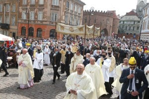 Corpus Christi celebrations in many places in Poland attract crowds of the faithful — from children in first Communion outfits throwing flowers along the route of the Eucharistic procession to entire families and elderly people. In many places, the celebrations are particularly solemn, with the participation of orchestras, guards and local parish groups.