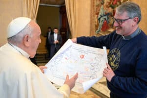 Pope Francis encouraged the saint’s modern-day followers to “maintain, in your choices, the same openness and the same readiness, without overcalculating, overcoming fears and hesitation, especially in the face of the many new forms of poverty of our times.”