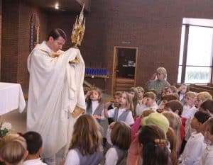 The parish modeled its children’s adoration service on one developed by Father Antoine Thomas, a Brother of St. John and a native of France who promotes children’s adoration around the world.