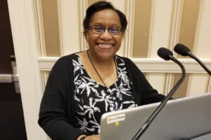 Then the petite woman who is quick to flash her broad smile launched into ways that her workshop will attempt to “overcome resistance to the conversation on racism” and equip participants to help their parishes to implement strategies to dismantle racism.