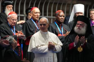 Many of the leaders had personally greeted Pope Leo earlier in the evening at Rome’s Colosseum where they took part in a meeting of religions for peace sponsored by the Community of Sant’Egidio. About 400 of the 3,000 people in attendance were scholars participating in a three-day conference on “Nostra Aetate” at Rome’s Pontifical Gregorian University.