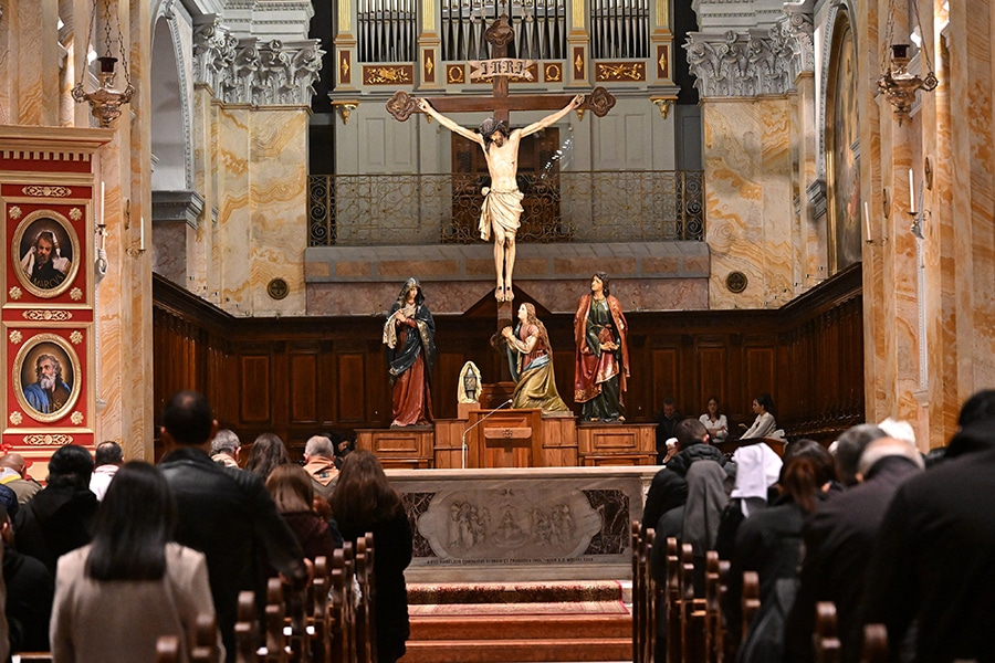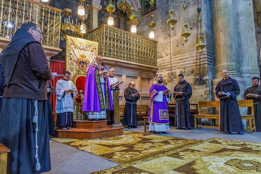 Jerusalem’s Holy Week embraced with silent prayer, intimate liturgies as war continues to escalate April 3, 2026By Paulina Guzik OSV News Filed Under: Conflict in the Middle East, Feature, News, World News Holy Week in the Holy Land is unfolding in unprecedented silence, as war-related restrictions have left sacred sites largely without the faithful. Israeli authorities, citing security concerns amid the U.S. and Israel–Iran war, have limited access to major liturgies, including those at the Church of the Holy Sepulcher, where a handful of friars led by Holy Land’s patriarchs celebrated Holy Thursday and Good Friday liturgies. Cardinal Pierbattista Pizzaballa, at right, celebrates Mass of the Lord’s Supper outside the Church of the Holy Sepulcher, in Jerusalem, April 2, 2026. After a major diplomatic incident that prevented him from entering the holy site on April 29, to celebrate Palm Sunday Mass, access was granted for Cardinal Pizzaballa to the holy site, and he was able to celebrate Holy Thursday Mass of the Lord’s Supper and wash the feet of priests present for the mandatum. (OSV News photo/courtesy Latin Patriarchate of Jerusalem) “Unable to celebrate the great liturgies of the Paschal Triduum” in the Church of the Holy Sepulcher, “due to the limitations imposed in these days, the different religious communities present in Jerusalem organized more intimate celebrations in their own churches and in the places entrusted to their care,” Custody of the Holy Land said in an April 2, statement. The friars of the Custody of the Holy Land, guided by the custos, Italian Father Francesco Ielpo, started the Sacred Triduum at the Basilica of Gethsemane, “in the place where the Lord began His Passion with prayer and trustful abandonment to the Father.” After a major diplomatic incident that prevented him from entering the holy site on March 29, to celebrate Palm Sunday Mass, access was granted for Cardinal Pierbattista Pizzaballa to the Church of the Holy Sepulcher, and he was able to celebrate the Holy Thursday Mass of the Lord’s Supper and wash the feet of priests present for the mandatum. “We are in the place where a stone once sealed death,” he told a small gathering, mostly of Franciscan friars and those working within the Latin patriarchate’s offices. “And yet today we are here to celebrate life. There is a tension we cannot ignore: outside, the doors of the Holy Sepulchre are closed. War has turned this place into a refuge, an ‘inside’ cut off from an ‘outside’ weighed down by fear and strain,” the cardinal said. “We are here as within a womb of peace, while the world around us is being torn apart, and we wish we could change all of this,” the Latin patriarch of Jerusalem said. With the gesture of the washing of the feet, Cardinal Pizzaballa said, Jesus bends down, and “Peter cannot accept a Lord who bends down.” By saying “If you do not accept this, you will no longer belong to me,” Cardinal Pizzaballa said Jesus uses the language of “communion.” “Jesus’ reply is even more uncompromising, and it is one of the most severe statements in the Gospel: ‘Unless I wash you, you will have no part with me’ (Jn 13:8),” the cardinal said, explaining what the Lord meant: “Peter, you may admire me, you may follow me, you may even defend me — but if you do not accept this way of loving, you will not enter into my passage. You will not share in my Passover,” he stressed. Cardinal Pierbattista Pizzaballa celebrates Mass of the Lord’s Supper in the Church of the Holy Sepulcher, in Jerusalem, April 2, 2026. After a major diplomatic incident that prevented him from entering the holy site on April 29, to celebrate Palm Sunday Mass, access was granted for Cardinal Pizzaballa to the holy site, and he was able to celebrate Holy Thursday Mass of the Lord’s Supper and wash the feet of priests present for the mandatum. (OSV News photo/courtesy Latin Patriarchate of Jerusalem) “Here lies the decisive point of this liturgy: Easter is not something Jesus does for us without us. It is something we can experience only with Him. And to live with Him, we must embrace His way of loving. There is no communion without that embrace.” The Eucharist, he said “cannot be separated from the washing of the feet. They are not two different moments; they are two expressions of the same love. The body broken on the altar is the same body that kneels before the disciples. If we separate the two, we lose the meaning of both.” “To have a part” in the Lord’s passage “resonates in a particular way for us, the Church of the Holy Land,” the Latin patriarch said April 2 to a handful of friars celebrating in what the patriarch called a “lifeless” Jerusalem at a press conference March 31. “We are not a strong Church, nor a large one, nor a Church that can afford easy paths, and we experience this constantly. We are often a weary Church, a Church put to the test, at times tempted to defend itself rather than to give itself,” he emphasized during the Mass of the Lord’s Supper. “And yet today the Lord does not ask us to be powerful, but to share in his life. He does not ask us to resolve everything, but not to reject his way of loving. For the Church shares in Christ not when it is secure, but when it accepts to share in his selflowering,” the patriarch said. “To have a part with him, for us who live and bear witness to the Gospel in this land, means learning the language of humility, the language of bending down,” he said, listing “bending down to fears, to misunderstandings, to the daily burdens of those who risk losing hope.” He said part of bending down is the opposite of “claiming to have immediate solutions” — instead, people of the Holy Land should offer “a faithful presence.” “Perhaps we cannot change the great movements of history, but we can decide whether to stand with Christ in his way of being within hist