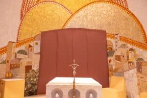 Father Rupnik had previously led the restoration of the Redemptoris Mater Chapel in the Apostolic Palace in Vatican City to commemorate St. John Paul’s 50th anniversary of his priesthood. After completing the Knights’ Holy Family Chapel, Father Rupnik’s first work in the United States, he was quoted as saying, “What was started in the Redemptoris Mater Chapel was brought to fruition here.”