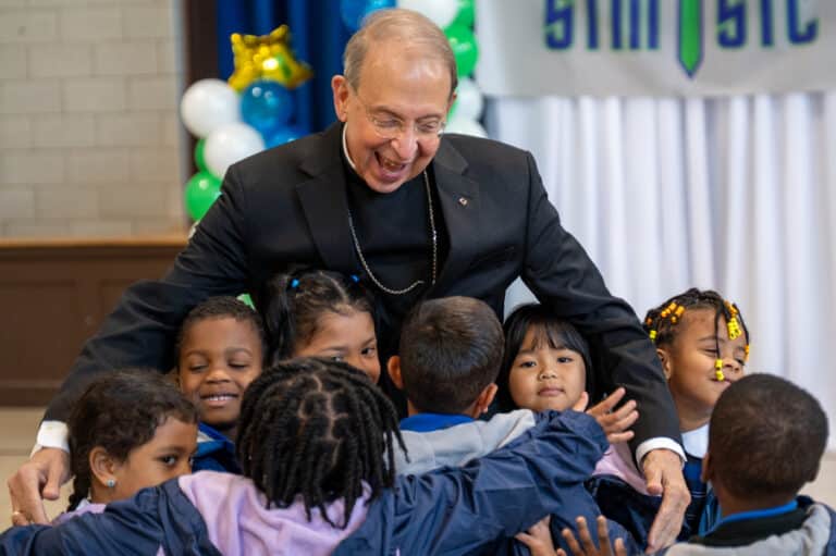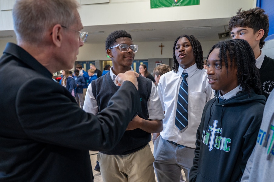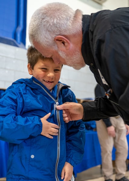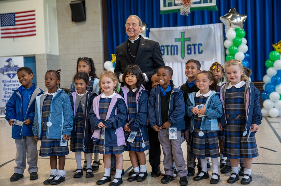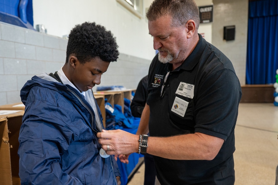 Knights of Columbus provide extra warmth with free winter coats October 22, 2025By Katie V. Jones Catholic Review Filed Under: Feature, Knights of Columbus, Local News, News, Schools OVERLEA – Excited kindergarten students at St. Michael-St. Clement School swarmed around a surprised Archbishop William E. Lori, shouting thank yous and hugging his knees before heading back to class Oct. 21. The young students, along with their fellow older classmates, each proudly wore a new winter jacket, courtesy the Knights of Columbus. Ronald Hassan, state treasurer for the Maryland State Council of the Knights of Columbus, assists smiling first-grader Anthony, a student at St. Michael-St. Clement School in Overlea, during the group’s annual Coats for Kids outreach event Oct. 21. (Kevin J. Parks/CR Staff) “It’s a real joy,” Archbishop Lori said, between photos with students. “It meets a need, and it brings happiness. Hats off to the Knights of Columbus. I’m glad to be a part of it.” More than a million students have received a free winter coat from the Knights of Columbus since the program began in 2009. This year, 200,000 coats were allocated to Maryland, with 525 given to the Archdiocese of Baltimore for distribution. “This is what we do as Knights of Columbus,” said Anthony N. Salvemini, state deputy for the Maryland State Council, Knights of Columbus. “First in charity, first in faith is our mission.” Schools typically have a student population below the poverty line and are chosen by the archbishop to be recipients, according to Rob Van Rite, Maryland State Council Coats for Kids co-chairman. While St. Michael-St. Clement School was the main recipient this year, receiving 250 coats, the remaining coats were given to students at The Loyola School and Mother Seton Academy, both in Baltimore. Last year, more than 700 coats were distributed to students at St. Agnes School in Catonsville, The Loyola School, as well as at Head Start and Catholic Charities locations in the area. “Just look at the excitement and anticipation,” Gregory Farno, chancellor of education for the Archdiocese of Baltimore, said, as he watched coats being distributed. “The Knights of Columbus are beyond words for what they do for our community.” All costs for the coats are covered by the Knights and coats are purchased in bulk from the Knights’ headquarters, Van Rite said. This year, new, slimmer coats with fleece-linings were purchased for close to $10,000. “It is a very different type of coat,” Van Rite said. “We used to have big, bulky coats, but they went up in price.” The new style choice allowed more coats to be purchased for students, Van Rite, and they are just as warm. Archbishop William E. Lori stands with students at St. Michael-St. Clement School in Overlea Oct. 21 during the Maryland State Council of the Knights of Columbus annual Coats for Kids outreach event Oct. 21. (Kevin J. Parks/CR Staff) Annie Powers, First Lady of the Maryland Knights of Columbus, watched each of her students with a critical eye as they tried on coats, having them lift their arms and pull at their sleeves before allowing them to pass on to Archbishop Lori for a photo. “I like making sure the coats fit,” Powers said, with satisfaction. As supreme chaplain of the Knights, Archbishop Lori has participated in the free coat event for years. “I think it is wonderful what he is doing, giving us all these jackets,” Zoey Ogbe, 13, an eighth grader, said, after receiving her coat and meeting the archbishop. “I also love how he is making the community a better place.” Fellow eighth grader Chloe Te, 14, was also thankful to get the coat. “They are such a beautiful color,” Chloe said, admiring her light gray jacket. “I’m getting warm already.” Email Katie V. Jones at kjones@CatholicReview.org To view more photos from the Coats for Kids outreach, click through the slideshow below: Thomas Gruel, state advocate for the Maryland State Council of the Knights of Columbus, assists David Murphy, a student at St. Michael-St. Clement School in Overlea, during the fraternity’s annual Coats for Kids outreach Oct. 21. Some 500 coats were distributed between the school and two additional locations in the archdiocese. (Kevin J. Parks/CR Staff) Greg Farno, chancellor for education in the Archdiocese of Baltimore, speaks with Patricia Angelini, principal of St. Michael-St. Clement School in Overlea, following the Coats for Kids outreach event organized by the Maryland State Council of the Knights of Columbus Oct. 21. A total of 500 coats were distributed at the school and at two additional locations within the archdiocese. (Kevin J. Parks/CR Staff) Heather Gruel, wife of the state advocate for the Maryland State Council of the Knights of Columbus, talks with a young student about the size she needs for her new jacket as part of the fraternity’s annual Coats for Kids outreach Oct. 21 at St. Michael-St. Clement School in Overlea. A total of 500 coats were distributed at the school and two additional locations within the archdiocese. (Kevin J. Parks/CR Staff) Archbishop William E. Lori greets Olivia McKinney, an eighth grader at St. Michael-St. Clement School in Overlea, during the annual Coats for Kids outreach event held by the Maryland State Council of the Knights of Columbus Oct. 21. McKinney said she will be attending Mercy High School following graduation. (Kevin J. Parks/CR Staff) Father James Bors, priest secretary for Archbishop William E. Lori, engaged with students at St. Michael-St. Clement School in Overlea Oct. 21 during the annual Coats for Kids outreach event. The event was sponsored by the Maryland State Council of the Knights of Columbus, with a total of 500 coats being distributed at the school and two additional locations within the archdiocese. (Kevin J. Parks/CR Staff) Fourth-grade teacher Viviana Cajigas (back row, left) and Principal Patricia Angelini pose with students at St. Michael-