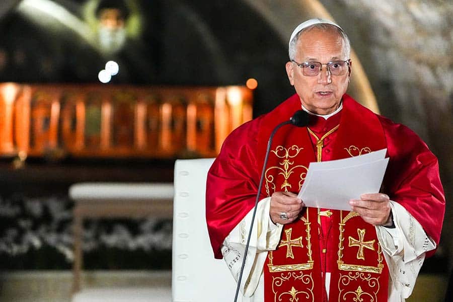 Love without fear, pope tells Lebanese church workers December 1, 2025By Cindy Wooden Catholic News Service Filed Under: Conflict in the Middle East, News, Vatican, World News HARISSA, Lebanon (CNS) — At a shrine topped by a 28-foot-tall statue of Our Lady of Lebanon, Pope Leo XIV listened to stories of unshakable faith amid war, injustice and suffering. The pope began Dec. 1 at the tomb of St. Charbel at the Monastery of St. Maron in Annaya, a place known for its atmosphere of silent prayer, especially in difficult moments. Despite intermittent rain, thousands of people gathered along the road leading to the monastery, tossing rose petals or rice as a sign of welcome. Pope Leo XIV delivers a reflection during a visit to the Monastery of St. Maron in Annaya, Lebanon, Dec. 1, 2025. Earlier, the pope prayed in silence before the tomb of St. Charbel, a 19th-century Lebanese Maronite monk and mystic. (CNS photo/Lola Gomez) After entrusting the Catholics of Lebanon and the entire country to St. Charbel’s care, Pope Leo went to the Shrine of Our Lady of Lebanon in Harissa and listened, like St. Charbel often did, to the cries of people’s hearts. Father Youhanna-Fouad Fahed, a married Maronite Catholic priest and pastor of a parish near the Syrian border, spoke first. His village welcomed Syrian refugees from the war that began in 2011 and was repeatedly struck by shelling from the Syrian side of the border. In December 2024, when the Syrian civil war officially ended, more refugees came. “The collection bag during Sunday Mass revealed to me a first, silent cry: I noticed Syrian currency inside: It was an offering mingled with pain,” Father Fahed told the pope. “Alone, feeling my people’s suffering smothered by fear, the misery concealed by the shame of asking for help, I went in search of them,” the priest said. Some told him they had fled to protect their daughters from forced marriage, and many arrived in Lebanon hoping to eventually migrate to Europe, even if that meant “entrusting their dreams to migrant smugglers who stole their savings.” All Father Fahed asked of Pope Leo was a word of comfort so the people would not feel forgotten and alone. Sister Dima Chebib is a member of the Sisters of the Sacred Hearts of Jesus and Mary and director of a school in Baalbeck, which is considered by many to be a stronghold of the Hezbollah militia and has been struck repeatedly by Israeli shelling in the past year. While many people fled the town, she said, the priests and religious of the Melkite Catholic diocese “decided to stay and welcome the refugee families — Christian and Muslim — who came seeking safety and peace. We shared bread, fear and hope. We lived together, prayed together and supported one another in fraternity and trust.” “In the heart of war,” she told the pope, “I discovered the peace of Christ. And I give thanks to God for this grace of remaining, loving and serving to the end.” Loren Capobres, who came to Lebanon from the Philippines as a domestic worker and now works with Jesuit Refugee Service, described the people she helps as “people who had left everything behind — broken not just by war, but by betrayal and abandonment.” Vincentian Father Charbel Fayad, a prison chaplain, told the pope of the repentance and conversion of prisoners who are amazed anyone cares enough to minister to them. “Even in the darkness of the cells, the light of Christ never goes out,” Father Fayad said. Pope Leo responded to the testimonies by saying that just as for St. Charbel in the 19th century, so today “it is in being with Mary at the foot of Jesus’ cross that our prayer — that invisible bridge which unites hearts — gives us the strength to continue to hope and work, even when surrounded by the sound of weapons and when the very necessities of daily life become a challenge.” Father Toni Elias, the Maronite pastor of Rmaych, near the Israeli border, did not speak to the pope, but told reporters, “We have basically been living in war for the past two, two and a half years but never without hope.” The visit of the pope, he said, is confirmation for believers that “what we have lived” — the fear and the hope combined — “has not been in vain.” Pope Leo’s speech to government and civic leaders Nov. 30 had focused on the Lebanese people and did not mention Israel at all. But Father Elias said that was “beautiful” because peace and harmony among Muslims, Christians and Druze “are our roots, our culture. That is Lebanon.” Meeting the country’s bishops, priests, religious and pastoral workers — a crowd of about 2,000 people — Pope Leo told them, “If we wish to build peace, we must anchor ourselves to heaven and, firmly set in that direction.” “Let us love without being afraid of losing those things which pass away and let us give without measure,” the pope said. “From these roots, strong and deep like those of cedars, love grows and with God’s help, concrete and lasting works of solidarity come to life.” Pope Leo was scheduled to end his morning with a private meeting with Catholic patriarchs from throughout the Middle East. Read More Vatican News Pope urges Lebanese not to give up on peace or each other Holding inflight news conference, pope talks about peace in Gaza, Ukraine Ecumenism is not ‘absorption or domination,’ but sharing gifts, pope says Pope gives Catholics in Turkey Advent ‘resolutions’ — building bridges An easy morning with Pope Leo Though Nicaea is a ruin, its Creed stands and unites Christians, pope says Copyright © 2025 Catholic News Service/U.S. Conference of Catholic Bishops Print