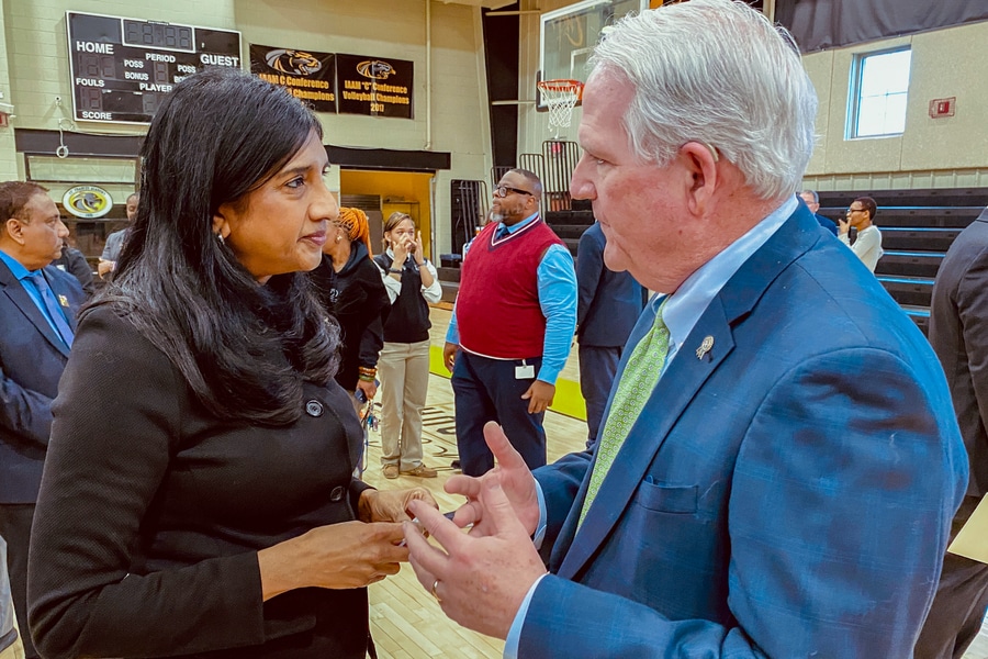Lt. Gov. Miller, college leaders seek student feedback on AI at St. Frances Academy forum February 20, 2026By Katie V. Jones Catholic Review Filed Under: Feature, Local News, News, Schools Before Maryland Lt. Gov. Aruna Miller took the stage Feb. 20 at St. Frances Academy in Baltimore, Deacon B. Curtis Turner, head of school, admitted to the student body and gathered guests that his entire opening remarks were generated by ChatGPT. “It’s the first time I’ve ever done anything like this,” Deacon Turner said. “What is remarkable to me is that AI knew enough about us to even generate the way we uniquely end our prayers.” Trinity Blizzard, a 10th grader at St. Frances Academy in Baltimore, asks a question during the Q&A portion of the “Maryland’s AI Future: Education, Equity, and the Emerging Workforce – A Students’ Townhall,” held Feb. 20 at St. Frances Academy. (Kevin J. Parks/CR Staff) The school always ends its prayers with “Mother Mary Lange, pray for us and Jesus in our hearts forever,” he explained, and “somehow the artificial intelligence knew that about our prayers.” “The question before us is not what we can do – I discovered that myself – but more importantly, what we will do with it?” Deacon Turner said. To answer that question, the school hosted Maryland’s “AI Future: Education, Equity and the Emerging Workforce” students’ town hall event with Miller and a panel of college presidents including Valerie Sheares Ashby, president of University of Maryland, Baltimore County (UMBC); Anthony L. Jenkins, president of Coppin State University in Baltimore; Dr. David Wilson, president of Morgan State University in Baltimore; Anupam Joshi, provost and chief AI officer for UMBC; and Sanjay Rai, secretary of higher education for the state of Maryland. John D’Adamo, president of Educational Vitality Partners, a consulting service, led the discussion, which started with comments from Miller followed by questions from students and comments from the panel. “Your voice matters,” D’Adamo emphasized to the students at the start. “What you share today will directly inform how Maryland helps to shape its AI application strategy. You have powerful people in the room who are eager to listen to you and the questions that you have to ask.” Maryland Lt. Gov. Aruna K. Miller and Gregory A. Farno, chancellor of education for the Archdiocese of Baltimore discuss the future of education for current and future generations following the “Maryland’s AI Future: Education, Equity, and the Emerging Workforce – A Students’ Townhall,” hosted Feb. 20 at St. Frances Academy in Baltimore. (Kevin J. Parks/CR Staff) While AI has been around for decades, “It’s moving faster and reaching farther than ever before” and crossing over into everyday life, said Miller, a Montgomery County Democrat. Its impact, she said, is underestimated, as it touches everything from economies to security measures and detecting diseases. The rules, she said, are changing, and the question is “who’s going to write those rules?” “The answer is you,” Miller told the students. “Because this isn’t just about technology, it’s about responsibility. It’s about judgment. It’s about values and ethics. (In) the age of artificial intelligence, the most important operating system is still the human conscience.” Students asked Miller and the panel about AI’s effect on the environment, how it was being used in public agencies and what the standards for AI were. Students also expressed concerns about AI’s impact on integrity and what its limits and values were. “I learned a lot from this – how AI can help and hinder us,” Zyron Bell, 18, a senior, said afterward. “If we know how to use it right … it looks like AI is heading in the right direction for us.” Gregory Farno, chancellor of Catholic schools in the Archdiocese of Baltimore, said afterward that “we are all learning what the rules ought to be for AI” and was impressed with the students and Miller. “What was the most enjoyable was when you see the students get up in front of all their peers and ask really good questions about AI,” Farno said. “I’m just glad they didn’t ask me.” David Kwabena Wilson, president of Morgan State University in Baltimore, responds to student questions on the future of AI and its impact on education Feb. 20 at St. Frances Academy in Baltimore. Wilson commented during the panel discussion the university looks to add a medical school to the campus in the next decade, a project in which AI could play a crucial role. (Kevin J. Parks/CR Staff) Toward the end of her talk, Miller admitted with a smile that she had used “a lot of tech talk” and could see some of the students “dozing off.” She then issued a challenge to each of them. “Use AI to check your work. Use it to ask better questions. Use it to learn, but never use it to replace your own efforts,” she said, emphasizing that it was always better to take the long road than shortcuts. “The level of depth of their questions regarding AI made me feel really confident that they know exactly what’s ahead of them and they just need some guidance on how to navigate this new future,” Miller said afterward. The students at St Frances, she said, also have faith “as a central part of their lives.” “That is what is going to guide them as we go through this new phase of AI. We need ethics. We need compassion. We need empathy. And they have that. They are already being taught all of that at St. Frances Academy,” Miller said. “They’re going to do great.” Email Katie V. Jones at kjones@CatholicReview.org Also see Students from L.A.-area Catholic school get surprise meeting with pope after school vandalism Notre Dame Prep develops new commons area U.S. solicitor general says Colorado should not deny Catholic preschools early education funds One day after desecration, California school holds re