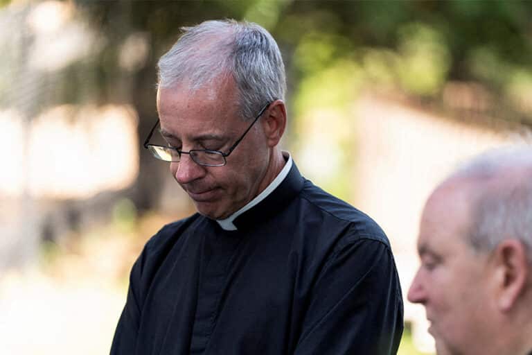 Minneapolis pastor recalls heroism amid tragedy at school Mass shooting September 2, 2025By OSV News OSV News Filed Under: Gun Violence, News, World News MINNEAPOLIS (OSV News) — For the first time since the Aug. 27 attack by a shooter who killed two children and wounded at least 21 more victims at an all-school Mass where he was presiding at Annunciation Catholic Church, Father Dennis Zehren publicly described his attempt to save the children. “If I could have got between those bullets and the kids,” Father Zehren said, his voice breaking with emotion at an Aug. 30 news conference outside Annunciation elementary school. “That’s what I was hoping to do. … the doors were barred, shut on the outside by the gunman,” said Father Zehren, Annunciation’s pastor. “We tried to get out. I think some of the fathers would have gone out there and gang-rushed him if they could have, and I would have been right there with them. “But I think by that time, the damage was done,” and the shooter died of a self-inflicted gunshot wound, Father Zehren said. A child writes a message on the ground with a chalk outside Annunciation Church in Minneapolis Aug. 30, 2025, which is a home to an elementary school and was the scene of a shooting. The shooter opened fire with a rifle through the windows of the school’s church and struck children attending Mass Aug. 27 during the first week of school, killing two and wounding 18 others. (OSV News photo/Tim Evans, Reuters) “It’s a difficult memory,” Father Zehren said. “It just was loud (the gunshots). It just kept coming, and my first instinct was to just rush toward where the bullets were coming from. There were some fathers who were heading in the same direction, and I was on the phone with 911 just hoping to peek out the window to see which direction (the shooter) might be going in. So I could give them some help. But it was a flurry, and like I said, it seemed to keep coming.” The news conference took place before the first parish Mass — held at the Annunciation Catholic School’s auditorium instead of the now-desecrated church — since the shooting. The school is steps away from the church. Identified as Robin Westman, the suspected shooter was a former Annunciation student, then known as Robert Westman, whose mother had been previously employed by the school. Westman fired from three guns through Annunciation’s stained-glass windows around 8:30 a.m. during the first all-school Mass of the PreK-to-eighth-grade school’s academic year. Westman died by suicide in the parking lot. Archbishop Bernard A. Hebda of St. Paul and Minneapolis joined Father Zehren at the news conference, at one point placing his hand on the priest’s shoulder in support. The archbishop concelebrated the Mass that followed. The archbishop and Father Zehren opened the news conference describing the importance of the Mass to the Catholic faith. The fact that Annunciation parish would hold a public Mass so soon after the church shooting might surprise some, the archbishop said. “And yet it’s so important for us in our Catholic tradition for Masses, where we most experience God’s presence and God’s love,” Archbishop Hebda said. “And it’s the place where we come together to be a community.” Father Zehren said the Mass is what the parish community needs. “This is why we’re here,” he said. “They just want to be together. They want to pray. They want to help and do anything they can. “Mass is the heart of what we do,” Father Zehren said. “The Mass is not just a worship service. Because we recognize that as Catholics … we enter into the paschal mystery of Jesus.” That mystery is presented to the community each time a Mass is celebrated, through joys and sorrows, the priest said. “Whenever we gather at Mass, we are re-presented with Jesus as he gathered with his Apostles at the Last Supper. We are presented with his suffering. We are presented with his dying, and we are presented with his rising from the dead,” Father Zehren said. A young woman walks past a memorial outside Annunciation Church in Minneapolis Aug. 30, 2025, which is a home to an elementary school and was the scene of a shooting. The shooter opened fire with a rifle through the windows of the school’s church and struck children attending Mass Aug. 27 during the first week of school, killing two and wounding 18 others. (OSV News photo/Tim Evans, Reuters) Asked about the impact of the church attack occurring during a Mass, Father Zehren said he would be “reflecting on that for the rest of my life.” “I will never be able to unsee,” Father Zehren said. “But in addition to the sorrow and the terror, we know that Jesus was there with us. … Jesus comes to the depths of what we are going through. That’s where he brings the healing and the salvation for whatever we go through.” Attending the Mass with his family was Sean O’Brien, an Annunciation alumnus and parent who said he was at the Aug. 27 Mass in the back of the church with his 2-year-old daughter, Molly, when shots rang out. His son Emmett, an Annunciation preschooler, was in the basement. His other children, fourth-grader Conor and first-grader Finley, were sitting with their classmates. “I saw a shaft of light going through the window and that’s when I knew we were being attacked,” O’Brien said. “I could feel like this evil force coming through, and that’s when I knew we had to get away from it.” “I grabbed my daughter, and we went behind a pillar. I didn’t really feel safe, so I went to another pillar more up front. When the shooting stopped, we said, ‘OK, who needs help?’ And we did what we could.'” O’Brien, 37, said he rushed to an injured student and remained there until the police came. “There were people taking action that were motivated by the love they felt for the people around them, from the very moment things started,” he said. “And that’s only go