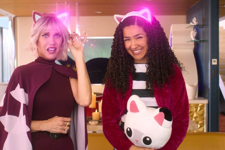 Movie Review: ‘Gabby’s Dollhouse: The Movie’ September 26, 2025By John Mulderig OSV News Filed Under: Movie & Television Reviews NEW YORK (OSV News) – Viewers allergic to cats, whether physically or by temperament, should steer clear of the colorful but cutesy musical fantasy “Gabby’s Dollhouse: The Movie” (Universal). So, too, should cynics, curmudgeons and anyone given to even occasional grumpiness. Gabby (Laila Lockhart Kraner) appears in the animated movie “Gabby’s Dollhouse: The Movie.” The Movie.” The OSV News classification is A-I — general patronage. The Motion Picture Association rating is G — general audiences. All ages admitted. (OSV News photo/Universal) Relentless cheerfulness is the order of the day in director Ryan Crego’s big-screen version of the popular Netflix series, which began airing in 2021. That mood is set, with determination, by actress Laila Lockhart Kraner who reprises her TV role as kitty-obsessed Gabby. Indeed, the upbeat mood is at nearly fever pitch from the start as Gabby sets out on a much-anticipated visit to her equally feline-fixated grandmother, Gigi (Gloria Estefan). The trip goes awry, however, when the toy structure of the title gets detached from Gigi’s van and veers out of control through the hilly streets of “Cat Francisco.” Though the dollhouse comes to a stop in one piece, it soon draws the attention of Vera (Kristen Wiig), an eccentric kitty litter tycoon whose lavish home is chockablock with cat-themed objects of every description. After purloining the miniature habitation, she reduces its previously beloved inhabitants — pusses one and all, naturally — from playmates to mere collectibles. The essential message of the adventure that follows as, amid a blend of animation and live-action, Gabby seeks to reclaim her cherished companions is that grown-ups should not follow Vera’s example by losing the imagination-driven playfulness that marked their childhood. There’s also a brief lesson about the importance of helping others. While appreciating these morally acceptable themes, parents may nonetheless find the proceedings through which they’re conveyed cloyingly saccharine. Targeted little ones, on the other hand, will likely consider the whole production nothing short of catnip. The film contains mild peril and some silly scatological humor. The OSV News classification is A-I — general patronage. The Motion Picture Association rating is G — general audiences. All ages admitted. Read More Entertainment Catholic filmmaker investigates UFO mysteries at the Vatican ‘The Sound of Music’ at 60 Celebrity chef ‘Lidia’ hasn’t forgotten what it’s like to be a refugee. Here’s how she’s giving back Movie Review: ‘Zootopia 2’ Thanksgiving on the big screen Movie Review: ‘Wicked: For Good’ Copyright © 2025 OSV News Print