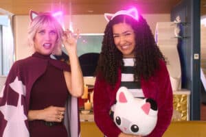 Indeed, the upbeat mood is at nearly fever pitch from the start as Gabby sets out on a much-anticipated visit to her equally feline-fixated grandmother, Gigi (Gloria Estefan). The trip goes awry, however, when the toy structure of the title gets detached from Gigi’s van and veers out of control through the hilly streets of “Cat Francisco.”