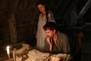 Though the Shakespeares are a loving clan, Will’s ambition can’t be satisfied in Stratford. So, with Agnes’ consent, he departs for London to embark on his career. He’s there when Judith falls ill with the plague. Yet, by the time he returns at a gallop, it’s Hamnet who is lying dead of the disease.