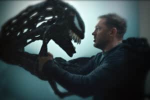 Most of the combat is sanitized. There are a few scenes, however, in which the hellhound extraterrestrials pursuing Eddie/Venom chow down on the odd extra, after which all the blood in the consumed victim’s body is seen shooting in a flood out of the back of the creature’s head.