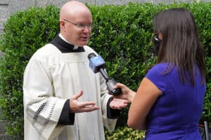 “When Jesus sent out the 12 (apostles) and then the 72 (disciples), he said something curious: ‘Those who receive you receive me and those who receive me receive the One who sent me,'” Father Landry said. “He prepared them for those who would reject the missionaries and thereby reject him. So the proclamation of the Gospel from the beginning involved that great mystery of reception and rejection.”