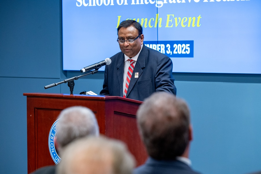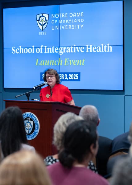 Notre Dame of Maryland University establishes School of Integrative Health after merger with MUIH September 4, 2025By Christopher Gunty Catholic Review Filed Under: Colleges, Feature, Health Care, Local News, News Notre Dame of Maryland University became the nation’s first comprehensive university with a school solely dedicated to integrative health on its campus, with the announcement Sept. 3 of a merger with the former Maryland University of Integrative Health. Dr. Mary Lou Yam, NDMU president, made the announcement of the establishment of the School of Integrative Health at an event on the north Baltimore campus, Dr. Marylou Yam, president of Notre Dame of Maryland University in Baltimore, offers opening remarks during the launch of the new NDMU School of Integrative Health in the Knott Science and Innovation Center at the Charles Street campus Sept. 3. (Kevin J. Parks/CR Staff) MUIH was founded in 1974 as the Centre for Traditional Acupuncture, changing its name in 1978 to the Traditional Acupuncture Institute in 1978, and then became the Tai Sophia Institute in 2000. In 2013, it attained university status from the Maryland Higher Education Commission and changed its name again to the Maryland University of Integrative Health. Integrative health is commonly defined as the coordinated use of multiple health approaches in health care, and it also describes a holistic perspective of what it is to be healthy, according to the NDMU SOIH website. The completion of this merger marks the first time in more than 50 years that two accredited private higher education institutions have merged in Maryland, Yam said. “With this merger, having conventional and integrative health programs alongside one another provides opportunities for interprofessional collaboration among faculty to advance the scholarship, research and practice of holistic healthcare,” she said. The SOIH will add 17 primarily online graduate-level degrees and post-baccalaureate certificates in programs including nutrition, health and wellness, coaching, health promotion, herbal medicine, integrative health studies, Ayurveda (a traditional Indian practice of holistic medicine) and yoga therapy. “These programs complement Notre Dame’s already robust offerings in conventional healthcare programs such as nursing, pharmacy, occupational therapy, radiologic technology, physician assistant, as well as Maryland’s first bachelor’s and master’s programs in art therapy,” Yam said. She noted that the SOIH will incorporate more than 500 former MUIH students, boosting NDMU’s graduate student enrollment by 50 percent. Dr. Sanjay Rai, secretary of Higher Education Commission for the State of Maryland, noted that his staff coordinated with the two universities to ensure the merger complied with regulations. “The use of integrative health practices across the U.S. has grown significantly over the last several years. This is why we believe that both institutions and the entire State of Maryland will benefit from them coming together,” he said. Rai added that the new school can serve as a model for other such cooperative efforts around the country and solidifies Maryland’s role as a leader and innovator in the healthcare industry. Juliana Terrezza, left, a second-year pharmacy student at Notre Dame of Maryland University in Baltimore, along with fellow pharmacy school students, attend the launch of the NDMU School of Integrative Health in the Knott Science and Innovation Center at the Charles Street campus Sept. 3. (Kevin J. Parks/CR Staff) Additional civic leaders representing the city, county and state attended the event. Dr. James Snow, formerly of MUIH and a doctor of clinical nutrition, will be a professor and chairman of the Nutrition and Herbal Medicine Department in the new School of Integrative Health. He cited a 2024 report from the Journal of the American Medical Association indicating that the use of complementary health approaches by the U.S. adult population almost doubled from 19 percent to 37 percent between 2002 and 2022. Yoga use tripled in that time from 5 percent to 16 percent and of those practicing yoga, the percentage used specifically for pain management increased from 11 percent to 29 percent, indicating the evolving ways in which complementary health approaches are being applied. He said that as MUIH joins NDMU as a School of Integrated Health, “I believe I can speak for the faculty and students in saying how excited we are to see how the principles and practices of our fields intersect with those already taught at NDMU.” Snow added that nutrition and medicine programs will explore drug-induced nutrient depletions and the benefits and potential risks of herb nutrient drug interactions. “Discussing these topics with the students and faculty of the School of Pharmacy will expand perspectives and help deepen the conversation,” he said. Juliana Terreza, a Catholic originally from New Jersey, in her second year of pharmacy school at NDMU, attended the event. Afterward, she told the Catholic Review, “I think we’re moving in the right direction. I think understanding the human body is a lot of how things interact. Maryland Secretary of Higher Education, Dr. Sanjay K. Rai, congratulates the faculty and staff of Notre Dame of Maryland University in Baltimore on the launch of the NDMU School of Integrative Health. His remarks were delivered Sept. 3, at the Knott Science and Innovation Center, located on the Charles Street campus. (Kevin J. Parks/CR Staff) “It takes time and more research, but I think a holistic approach is something very needed in society to truly understand how all the mechanisms work with each other. And it’s not just healing the body, it’s healing the mind and the spirit,” she said. “For me, it’s more understanding the holistic side of it and the positives to it as I don’t know much yet about it. And like herbal medicine, acupuncture and all of these things that 