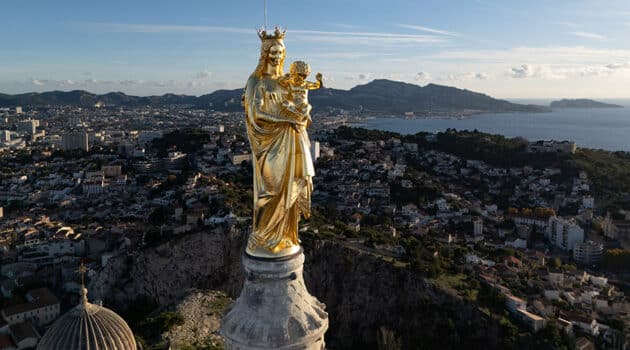 Marseille’s famed ‘Good Mother’ will shine again atop city’s cathedral Caroline de Sury December 6, 2025 One year after the reopening of Notre Dame de Paris, Marseille’s Basilica of Notre Dame de la Garde is preparing to celebrate, on Dec. 7, the completion of restoration work on the iconic gilded copper statue of the Virgin Mary that crowns it.