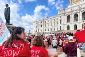 Annunciation families demanding change include Malia Kimbrell, who during a news conference Sept. 14 at Hennepin Healthcare in Minneapolis urged local lawmakers to fund mental health support, improve measures on background checks and place an immediate ban on semi-automatic rifles and high-capacity magazines. Kimbrell’s daughter, Vivian St. Clair, was among the children wounded in the Aug. 27 shooting.