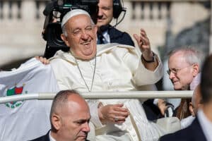 The pope prayed: “May Mary, Mediatrix of grace, ever vigilant and caring, obtain for all humanity the gift of concord and peace.”