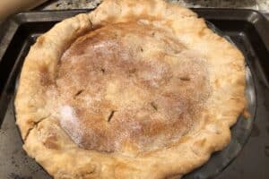 Last weekend I made an apple pie when returning a pie plate (and a stack of other dishes) to my friend Katie who had made us a chicken pot pie. I made one for us at the same time, and it was very popular with 75% of our household.