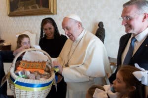 NEW HAVEN, Conn. (CNS) — Pope Francis blessed a special Easter basket during a private audience with Supreme Knight Patrick Kelly and his family at the Vatican April 11.