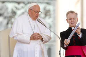 Before going to the hospital the pope seemed well and in good spirits, holding his general audience as usual, riding in the popemobile, blessing babies, walking with a cane and meeting special guests afterward. He had held two private meetings before the general audience in St. Peter’s Square.