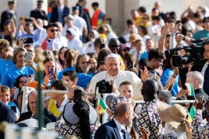 The pope began his audience in St. Peter’s Square by explaining that he would “postpone the usual catechesis” — he currently is in the middle of a series of talks about the Holy Spirit — to discuss “the people who — even at this moment — are crossing seas and deserts to reach a land where they can live in peace and security.”