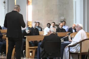 Rome Auxiliary Bishop Michele Di Tolve, who was present at the meeting, described the dialogue with the pope as part of the priests’ formation.