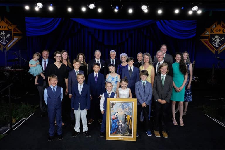 Pope Leo greets Knights of Columbus at Supreme Convention celebrating hope, service August 6, 2025By Gina Christian OSV News Filed Under: Feature, Knights of Columbus, News, World News Pope Leo XIV commended the Knights of Columbus for uniting Catholic men in prayer and fraternity, while extending “generous service to vulnerable populations,” as the fraternal organization holds its 143rd Supreme Convention in Washington. The Knights boast 2.1 million members throughout the world, and more than 1,900 were on hand with their families at the convention to view the pope’s video message Aug. 5. Pope Leo noted in his three minute address that the convention’s theme, “Heralds of Hope,” was timely amid the Jubilee Year, which is dedicated to hope. Pope Leo XIV makes some final remarks at the conclusion of the Jubilee of Youth in Rome’s Tor Vergata neighborhood Aug. 3, 2025. (CNS photo/Lola Gomez) Rather than mere optimism, Catholic teaching defines hope in the church’s universal catechism as “the theological virtue by which we desire the kingdom of heaven and eternal life as our happiness, placing our trust in Christ’s promises and relying not on our own strength, but on the help of the grace of the Holy Spirit.” “As Catholics, we know that the source of our hope is Jesus Christ, and he has sent his followers in every age to bring the good news of his saving Paschal Mystery to the entire world,” said Pope Leo. He added that “in a particular way during this Holy Year, we are called to be tangible signs of hope for those of our brothers and sisters of any kind.” The pope added that the Knights’ founder, Blessed Michael J. McGivney — who in 1882 established what would become a global fraternal Catholic organization with more than 16,800 local councils — “understood this well.” “He saw the many needs of immigrant Catholics and sought to bring relief to the poor and suffering through his faithful celebration of the sacraments, as well as through fraternal assistance — fraternal assistance which continues to this day,” Pope Leo said in his message. According to the Knights, their members donated more than 47 million service hours and upwards of $190 million for various humanitarian and faith-affirming efforts in their communities in 2023. In an Aug. 5 statement issued shortly after the video aired, Supreme Knight Patrick Kelly thanked Pope Leo for his message. “We are privileged to receive this historic video greeting from His Holiness Pope Leo XIV, his second video message to an American audience,” said Kelly. “Together, we promise Pope Leo XIV our prayers and loyalty, and we will always be united with him.” On the eve of the convention’s Aug. 5 opening, Kelly presented the Knights’ Annual International Program Awards, which recognize councils with outstanding programs supporting faith, family and community life. Winners of the awards included: — Coral Springs, Fla., Council 8838, which held 17 consecutive monthly holy hours for youth in five area parishes, an initiative that drew an average of 700 people, including 250 youth, for Eucharistic adoration, the rosary, confession, worship music and fellowship. — Andrey Sheptytsky Council 15804 of Ivano-Frankivsk, Ukraine, which created a Knights of Columbus Cup sports competition for more than 50 orphans and internally displaced children amid Russia’s full-scale invasion of Ukraine. The competition also resulted in 20 men joining the Knights. — St. Joseph Council 11370 of Maumee, Ohio, which founded the “Off the Streets Toledo” project in 2021 to secure stable housing for over 1,000 individuals and families experiencing homelessness. The effort encompasses a range of both material and spiritual help. — Cure Roland Ouellet Council 11078 in Val-d’Or, Quebec, which opened a thrift store to serve the needs of an increased immigrant population, who are provided with clothing and other essential items free of charge. — St. Mary of the Hills Council 13950 in Rochester Hills, Mich., which led 43 fellow councils within the Archdiocese of Detroit in raising $65,000 for the “Father McGivney Field of Dreams,” a baseball field compliant with the requirements of the Americans with Disabilities Act. The field, blessed by Detroit Auxiliary Bishop Robert Fisher, is used in particular by a local league for persons with disabilities aged 16 years and older. The Knights also named the Duppong family — whose late daughter Michelle Duppong, a diocesan faith formation director and former FOCUS missionary is now being considered for sainthood — as the “International Family of the Year” for making faith the center of family life. A Knight for 53 years, Ken Duppong has served in a number of leadership roles in the fraternal organization. He along with his wife Mary Ann Duppong — married 52 years — and their six children (including Michelle) were recognized for the many ways they put their faith into action by devoting themselves to a number of Catholic outreaches and ministries. Pallottine Father Frank Donio, executive director of the Conference of Major Superiors of Men and the Knights’ state chaplain for the District of Columbia, was awarded the Blessed Michael McGivney Medal. The medal is an annual honor bestowed on a Knights chaplain who demonstrates pastoral zeal and outstanding service. Read More Knights of Columbus Knights of Columbus provide extra warmth with free winter coats Pope thanks Knights for generosity, respecting life, charity Catholic women at Knights convention urged to ‘live on tomorrow’s joy today’ Knights of Columbus open 143rd Supreme Convention with call to be ‘heralds of hope’ At Mass to open convention, Knights urged to commit to ‘holiness, unity, charity, fraternity’ Father Donio receives Knights’ highest award for work as chaplain Copyright © 2025 OSV News Print