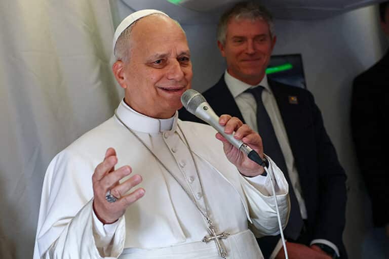 Pope Leo on papal plane to Cameroon: St. Augustine invites all to search for God and truth today April 15, 2026By Courtney Mares OSV News Filed Under: Feature, News, Vatican, World News ABOARD THE PAPAL FLIGHT TO YAOUNDE, Cameroon (OSV News) — Pope Leo XIV spoke to journalists aboard the papal plane on April 15 on the five-hour flight from Algeria to Cameroon, underlining St. Augustine’s enduring importance today, saying that the saint’s invitation “to search for God and to search for truth is something that is very much needed today.” Reflecting on the past two days in Algeria, the first leg of the pope’s 11-day tour of four African countries, the pope said that his return to the modern Algerian city of Annaba and the ruins of the Roman city of Hippo April 14 was not only “a special blessing for me personally,” but also “symbolically significant” to “offer to the Church and the world a vision that St. Augustine offers us in terms of that search for God and the struggle to build community.” Speaking in English, Pope Leo said that St. Augustine, who was a bishop of Hippo for more than 30 years, is a figure who is “very much from the past, speaks to us of tradition, speaks to us of life, the Church, as the Church grew in the early centuries.” “And he’s still a very important figure today,” the pope added. “His writings, his teaching, his spirituality, his invitation to search for God and to search for truth is something that is very much needed today, a message that is very real for all of us today, as believers in Jesus Christ, but (also) for all people.” “And as you’ve seen, even the people of Algeria, the vast majority of whom are not Christian, they very much honor and respect the memory of St. Augustine as one of the great sons of their land,” Pope Leo added. “So it was a special blessing for me personally to return once again to Annaba yesterday, but also to offer to the Church and the world a vision that St. Augustine offers us in terms of that search for God and the struggle to build community, to seek for unity among all peoples and a respect for all peoples in spite of the differences,” he said. The pope spoke during the five-hour flight on the papal plane, traveling from Algiers, Algeria, to Yaoundé, Cameroon. Sweeping views of the golden sands of the vast Sahara Desert could be seen out the window during the flight for two hours as the plane flew south over Algeria, the largest country in Africa. The papal plane also flew over Niger, Chad and Nigerian airspace en route to Cameroon’s capital city. Pope Leo offered a blessing to each country as the chartered papal ITA plane flew over in telegrams sent to the presidents of each nation. Cameroon is the second African country the pope is visiting in his 11-day tour of four African countries — Algeria, Cameroon, Angola and Equatorial Guinea. After pulling back the cabin curtain to enter the back of the plane where the journalists sit, the pope began with a smile and a greeting, speaking in his native English. “Happy to greet you all this morning after what I personally consider to have been a very blessed trip and visit to Algeria,” Pope Leo said. He expressed gratitude to the local authorities in Algeria who made the visit possible, pointing out “they’ve even given us the full honor of an escort as we fly over Algerian airspace,” gesturing to the Algerian military fighter jets flying on either side of the papal plane. Pope Leo described his time in Algeria as a wonderful opportunity to “continue to build bridges” and to promote interfaith dialogue between Catholics and Muslims. “I think the visit to the mosque was significant to say that although we have different beliefs, we have different ways of worshiping, we have different ways of living, we can live together in peace,” the pope said. “And so I think that to promote that kind of image is something which the world needs to hear today, and that together we can continue to offer in our witness as we continue on this apostolic voyage,” he added. The papal plane touched down in the Cameroonian capital of Yaoundé around 3 p.m. local time on April 15. The pope was welcomed with a full honor guard on the tarmac at the foot of the staircase of the plane. Pope Leo is visiting the central African nation April 15-18, during which time he will meet with religious and political leaders, traditional chiefs, peacemakers, as well as the more than 8 million Catholics living in the country. The pope will visit three cities in Cameroon: the capital Yaoundé on April 15, the northwestern city of Bamenda on April 16, and Douala, the country’s largest city and economic hub, on April 17. The highly anticipated papal visit to Bamenda will bring Pope Leo directly into a conflict zone in Cameroon’s Anglophone northwest, where a separatist conflict has been ongoing for nearly a decade. Two days before the pope’s arrival, a separatist alliance in Cameroon’s English-speaking regions declared a three-day ceasefire, saying it would observe the three-day “safe travel passage” to allow civilians and visitors to move freely during the pope’s visit. Pope Leo XIV sets stage for June consistory with letter to cardinals New Chaldean patriarch elected for Iraq amid pope’s calls he ‘should be’ a ‘father in faith’ Trump draws backlash over Pope Leo rant, ‘deeply offensive’ image of him looking like Christ Need a guide for deeper prayer? Pope Leo recommends a letter by St. Augustine Pope Leo praises witness of Algeria’s Christian martyrs at meeting with local Catholics Pope Leo responds to Trump: ‘Blessed are the peacemakers’ Copyright © 2026 OSV News Print