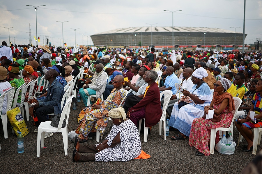 Pope Leo XIV celebrates Mass with 120,000 people in Cameroon: ‘Bring the bread of life to your neighbors’ April 17, 2026By Courtney Mares OSV News Filed Under: Feature, News, Vatican, World News DOUALA, Cameroon (OSV News) — Pope Leo XIV celebrated Mass for more than 120,000 people in Cameroon’s largest city on April 17, urging “beloved children of the African continent” to share God’s love by feeding the hungry and offering the spiritual nourishment of “the bread of life.” Because of the large turnout, the Mass was held in a parking area next to Douala’s Japoma Stadium under 90-degree heat. Catholics in the crowd told OSV News that they had spent the night outside to claim their spots for the Mass. Remerit Ngwe, 28, waited 16 hours outside overnight for the papal Mass. “Since yesterday 7 p.m. we slept here on the stone waiting for the pope,” she told OSV News. “We are so happy we finally saw the pope, Pope Leo, a once in a lifetime experience. Long live the pope!” Speaking in both French and English during his homily, Pope Leo opened with a striking question to the Cameroonian congregation, “where is God in the face of people’s hunger?” Faithful attend a Mass celebrated by Pope Leo XIV near the Japoma Stadium in Douala, Cameroon, April 17, 2026. (OSV News photo/Guglielmo Mangiapane, Reuters) He turned to the Gospel of John and its account of the multiplication of the loaves and fishes to respond. “A serious problem was solved by blessing the little food that was present and sharing it with all who were hungry,” Pope Leo said in French. “There is bread for everyone if it is given to everyone. There is bread for everyone if it is taken, not with a hand that snatches away, but with a hand that gives,” he underlined. According to the World Food Programme, 2.9 million people in Cameroon face food insecurity and need humanitarian assistance, with about 23% of the population living below the poverty line. The pope said the miracle of the multiplication of the loaves and fishes reveals a God who comes “to serve with love, not to dominate.” “It shows us not only how God provides humanity with the bread of life, but how we can share this sustenance with all men and women who, like ourselves, hunger for peace, freedom and justice. Each act of solidarity and forgiveness, every good effort, becomes a morsel of bread for humanity in need of care,” he said. “Yet this alone is not enough: the food that sustains the body must be accompanied, with equal charity, by nourishment for the soul — a nourishment that sustains our conscience and steadies us in dark hours of fear and amid the shadows of suffering,” he emphasized. Pope Leo said that this spiritual nourishment is “Christ himself, who always gives his Church abundant sustenance and strengthens us on our journey by giving us his Eucharistic Body.” “Sisters and brothers, the Eucharist that we are celebrating is the source of renewed faith, because Jesus becomes present among us.” “This very altar, around which we gather for the Eucharist, becomes a proclamation of hope amid the trials of history and the injustices we see around us,” he added. The pope’s message resonated with Cameroonians in the crowd. Ngwe said, “Being a Catholic Christian allows you to partake in the Eucharist, which is the highest celebration.” Faithful attend a Mass celebrated by Pope Leo XIV near the Japoma Stadium in Douala, Cameroon, April 17, 2026. (OSV News photo/Guglielmo Mangiapane, Reuters) She said she loves the “oneness” of the Catholic Church, “When I see Cameroon, when I see Rome, when I see USA, we practice the same … Christianity. That is the pride of being a Catholic Christian.” Cameroon is home to more than 8 million Catholics, nearly 30% of the population, and the Church often serves as a bridge across linguistic and political divides. In an interview with OSV News, Father Gabriel Abega Owona of the Diocese of Sangmélima described the Church’s mission in the country. As a priest, he said, “our daily challenge is to nurture faith within a context of material poverty, yet of immense spiritual richness.” “Being a priest here means being a father, a social worker, and a mediator. My experience is defined by faces: young people seeking work and dignity, families praying for peace, and the explosive joy of the Sunday liturgy — which lasts for hours and serves as a true foretaste of paradise.” “In Cameroon, the Church is not an institution standing ‘alongside’ society, but rather its beating heart — particularly in those areas where the State struggles to reach. The Church manages nearly 1,000 primary schools and hundreds of health care facilities. Indeed, in many villages, the only doctor or teacher available is one provided by the Catholic mission,” Abega Owona explained. He added that the Catholic Church in Cameroon “serves as a bridge between the Francophone and Anglophone cultures” and strives “to translate the Gospel into concrete actions for human development.” Switching to English for part of his homily, the pope urged Cameroon’s Catholics to “be the first faces and hands that bring the bread of life to your neighbors, providing them with the food of wisdom and deliverance from all that does not nourish them, but rather obscures good desires and robs them of their dignity.” The pope flew 160 miles from Yaoundé to Douala on Friday morning for the Mass, at which he greeted the enthusiastic crowd from the popemobile. After the Mass, Pope Leo will make a private visit to the Catholic Hospital of St. Paul in Douala before returning by plane to Cameroon’s capital in the afternoon, where he will meet with university students and professors at the Catholic University of Central Africa in Yaoundé. Read More Vatican News Trump says he has ‘right to disagree’ with Pope Leo, meeting him not ‘necessary’ At Cameroonian orphanage, Pope Leo tells c