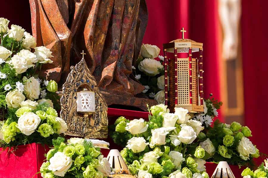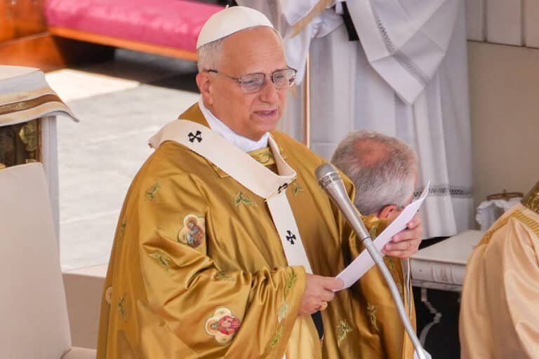 Pope Leo’s homily for the canonization Mass for Carlo Acutis and Pier Giorgio Frassati September 7, 2025By OSV News OSV News Filed Under: News, Saints, Vatican, World News This is the text from Pope Leo XIV’s homily for the canonization Mass for Saints Carlo Acutis and Pier Giorgio Frassati, given Sept. 7, 2025 in St. Peter’s Square. Dear brothers and sisters, In the first reading, we heard a question: (Lord,) “who has learned your counsel, unless you have given wisdom and sent your holy spirit from on high?” This question comes after two young Blesseds, Pier Giorgio Frassati and Carlo Acutis, were proclaimed saints, and this is providential because in the Book of Wisdom, this question is attributed to a young man like them: King Solomon. Reliquaries containing the relics of St. Carlo Acutis and St. Pier Giorgio Frassati stand at the foot of a statue of Mary during the canonization Mass celebrated by Pope Leo XIV in St. Peter’s Square at the Vatican Sept. 7, 2025. (CNS photo/Lola Gomez) Upon the death of his father David, he realized that he had many things: power, wealth, health, youth, beauty, and the entire kingdom. It was precisely this great abundance of resources that raised a question in his heart: “What must I do so that nothing is lost?” Solomon understood that the only way to find an answer was to ask God for an even greater gift, that of his wisdom, so that he might know God’s plans and follow them faithfully. He realized, in fact, that only in this way would everything find its place in the Lord’s great plan. Yes, because the greatest risk in life is to waste it outside of God’s plan. Jesus, too, in the Gospel, speaks to us of a plan to which we must commit wholeheartedly. He says: “Whoever does not carry the cross and follow me cannot be my disciple”; and again: “none of you can become my disciple if you do not give up all your possessions.” He calls us to abandon ourselves without hesitation to the adventure that he offers us, with the intelligence and strength that comes from his Spirit, that we can receive to the extent that we empty ourselves of the things and ideas to which we are attached, in order to listen to his word. Many young people, over the centuries, have had to face this crossroad in their lives. Think of St. Francis of Assisi, like Solomon, he too was young and rich, thirsty for glory and fame. That is why he went to war, hoping to be knighted and adorned with honors. But Jesus appeared to him along the way and asked him to reflect on what he was doing. Coming to his senses, he asked God a simple question: “Lord, what do you want me to do?” From there, he changed his life and began to write a different story: the wonderful story of holiness that we all know, stripping himself of everything to follow the Lord, living in poverty and preferring the love of his brothers and sisters, especially the weakest and smallest, to his father’s gold, silver and precious fabrics. How many similar saints we could recall! Sometimes we portray them as great figures, forgetting that for them it all began when, while still young, they said “yes” to God and gave themselves to him completely, keeping nothing for themselves. St. Augustine recounts that, in the “tortuous and tangled knot” of his life, a voice deep within him said: “I want you. God gave him a new direction, a new path, a new reason, in which nothing of his life was lost. In this setting, today we look to St. Pier Giorgio Frassati and St. Carlo Acutis: a young man from the early 20th century and a teenager from our own day, both in love with Jesus and ready to give everything for him. More than 80,000 people gather in St. Peter’s Square at the Vatican for the canonization Mass of Sts. Pier Giorgio Frassati and Carlo Acutis celebrated by Pope Leo XIV Sept. 7, 2025. (CNS photo/Lola Gomez) Pier Giorgio encountered the Lord through school and church groups — Catholic Action, the Conferences of St. Vincent, the FUCI (Italian Catholic University Federation), the Dominican Third Order — and he bore witness to God with his joy of living and of being a Christian in prayer, friendship and charity. This was so evident that seeing him walking the streets of Turin with carts full of supplies for the poor, his friends renamed him “Frassati Impresa Trasporti” (Frassati Transport Company)! Even today, Pier Giorgio’s life is a beacon for lay spirituality. For him, faith was not a private devotion, but it was driven by the power of the Gospel and his membership in ecclesial associations. He was also generously committed to society, contributed to political life and devoted himself ardently to the service of the poor. Carlo, for his part, encountered Jesus in his family, thanks to his parents, Andrea and Antonia — who are here today with his two siblings, Francesca and Michele — and then at school, and above all in the sacraments celebrated in the parish community. He grew up naturally integrating prayer, sport, study and charity into his days as a child and young man. Both Pier Giorgio and Carlo cultivated their love for God and for their brothers and sisters through simple acts, available to everyone: daily Mass, prayer, and especially Eucharistic Adoration. Carlo used to say: “In front of the sun, you get a tan. In front of the Eucharist, you become a saint!” And again: “Sadness is looking at yourself; happiness is looking at God. Conversion is nothing more than shifting your gaze from below to above; a simple movement of the eyes is enough.” Another essential practice for them was frequent Confession. Carlo wrote: “The only thing we really have to fear is sin;” and he marveled because — in his own words — “people are so concerned with the beauty of their bodies and do not care about the beauty of their souls.” Finally, both had a great devotion to the saints and to the Virgin Mary, and they practiced charity generously. Pier Giorgio said: “Around th