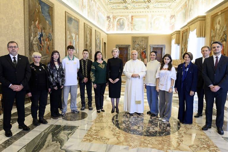 Pope meets young people returned to Ukraine from Russia November 21, 2025By Catholic News Service Catholic News Service Filed Under: News, Vatican, War in Ukraine, World News VATICAN CITY (CNS) — Thanks to a handful of countries, including the Vatican, some 1,600 Ukrainian children forcibly taken to Russia have been reunited with family members in Ukraine. Pope Leo XIV looks at drawings given to him by Ukrainian young people who have been returned to Ukraine after having been forcibly taken to Russia during a meeting in the Apostolic Palace at the Vatican Nov. 21, 2025. (CNS photo/Vatican Media) Four of the young people met Pope Leo XIV at the Vatican Nov. 21 to express their thanks and to ask for a more formal, systematic effort to facilitate the return of at least 19,000 Ukrainian children believed to be in Russia. The young people were accompanied by family members; Iryna Vereshchuk, an official in the office of Ukrainian President Volodymyr Zelenskyy, who is working on the project, “Bring Kids Back Ukraine”; Andrii Yurash, Ukraine’s ambassador to the Holy See; and U.S. Sen. Amy Klobuchar, D-Minn. In a statement from her office, Klobuchar said, “Pope Leo is a true moral force for peace and justice and a champion for children around the world. It was an honor to meet him as part of our mission to bring home the Ukrainian children abducted by Russia and chart a path towards peace and healing for Ukraine.” “We cannot accept a world where children are abducted during wartime and used as hostages for negotiations,” the statement continued. “The United States must remain steadfast in our support for Ukraine’s fight for freedom, and we should all heed Pope Leo’s example of serving those in need, pursuing the common good, and calling for peace.” Read More War in Ukraine Ukraine’s religious leaders and Munich 2.0 Pope acknowledges Latvian’s fears about Russia, urges prayer Ceding territory ‘won’t stop Russia,’ Ukrainian bishop says as dozens die in Ternopil attack Ukrainian president honors Dominican Sister for war relief efforts Gudziak: Russian drone attack on Ukrainian kindergarten shows ‘relentless barbarity’ Filmmakers tell story of Ukraine’s persecuted Christians ‘hunted’ by Russia Copyright © 2025 Catholic News Service/U.S. Conference of Catholic Bishops Print