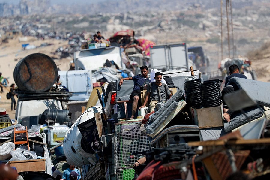 Pope phones Gaza parish as Israel launches new offensive on city September 16, 2025By Cindy Wooden Catholic News Service Filed Under: Conflict in the Middle East, News, Vatican, World News VATICAN CITY (CNS) — Just a few hours after Israel launched a major new ground offensive in Gaza City, Pope Leo XIV called the pastor of the city’s only Latin-rite parish to express his concern, his prayers and his closeness, the Vatican press office said. Displaced Palestinians, fleeing northern Gaza due to an Israeli military operation, move southward in the central Gaza Strip Sept. 16, 2025, after Israeli forces ordered residents of Gaza City to evacuate to the south. (OSV News photo/Mahmoud Issa, Reuters) Pope Leo, who was spending the day at Castel Gandolfo, spoke Sept. 16 with Argentine Father Gabriel Romanelli, a member of the Institute of the Incarnate Word and pastor of Holy Family Parish in Gaza City. Father Romanelli told the pope that Israeli troops and tanks had not reached the area where the church compound is located, the press office said. But the sound of artillery fire could be heard from the parish. While the Israeli military has been warning civilians to evacuate Gaza City, Father Romanelli told the pope that about 450 people are being sheltered in the parish compound, and the parish continues to assist them and other people in the neighborhood with food, water and medicine. The parish oratory continues operating, leading people in prayer and organizing activities for children, the press office said. Special assistance to the sick and elderly also continues. Posting on X at 6 a.m. Sept. 16, Israeli Defense Minister Israel Katz wrote, “Gaza is burning. The IDF (Israeli Defense Forces) is striking terrorist infrastructure with an iron fist, and IDF soldiers are fighting bravely to create the conditions for the release of the hostages and the defeat of Hamas. We will not relent and we will not go back — until the mission is complete.” Father Romanelli posted on X a quote from St. John Bosco: “Trusting in Mary brings unshakable comfort and hope.” Read More Conflict in the Middle East Unity, dialogue, respect: On first trip, pope highlights paths to peace Situation in Gaza remains ‘critical’ despite peace plan, say Catholic leaders Choose the way of peace, pope says as he leaves Lebanon Lebanese have what is needed to build a future of peace, pope says Love without fear, pope tells Lebanese church workers Pope urges Lebanese not to give up on peace or each other Copyright © 2025 Catholic News Service/U.S. Conference of Catholic Bishops Print