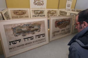 The centerpiece of the exhibit was comprised of 14 decorative panels made by Jewish artists to mark the inauguration of the pontificates of Popes Clement XII, Clement XIII, Clement XIV and Pius VI in the 1700s.