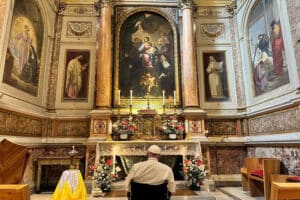 The afternoon of Aug. 27, “the memorial of St. Monica, Pope Francis went to St. Augustine’s Church in Rome, and paused in prayer in the chapel where the saint’s remains are kept and later before the image of Our Lady of the Pilgrims,” a painting by Caravaggio, the Renaissance master, the Vatican press office said.