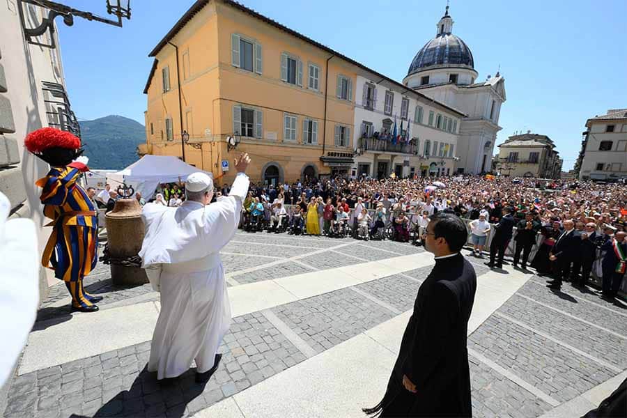 Pope: Summer marks time to balance busyness with rest, prayer, joy with loved ones July 21, 2025By Carol Glatz Catholic News Service Filed Under: Feature, News, Vatican, World News VATICAN CITY (CNS) — Summer should be spent cultivating time with God, relaxing and caring for others, Pope Leo XIV said at Mass in a breezy hilltown during his brief summer break. “During the summer, we have more free time in which to gather our thoughts and reflect and also to travel and spend time with each other,” he said in his homily during Mass July 20 in the Cathedral of St. Pancras Martyr in the town of Albano Laziale, southeast of Rome. “Let us make good use of this, by leaving behind the whirlwind of commitments and worries in order to savor a few moments of peace and reflection, taking time as well to visit other places and share in the joy of seeing others, as I am doing here today,” he said. Pope Leo XIV greets visitors at the conclusion of the Angelus in Castel Gandolfo, Italy, July 20, 2025. (CNS photo/Vatican Media) The cathedral had been named the future pope’s cardinal titular church Feb. 6, and then-Cardinal Robert F. Prevost had been scheduled to take possession of it May 12, on the feast of St. Pancras. “But the Holy Spirit did something else,” Pope Leo said, smiling, in his homily, referring to his election as pope May 8. The Diocese of Albano still gifted him the same silver platter they had prepared for him as a cardinal, adorned with his coat of arms, during a brief presentation of gifts outside the front entrance of the cathedral. However, “we had to fix the crest,” Bishop Vincenzo Viva of Albano told him, referring to the slight changes needed for it to be a papal emblem. The pope had walked to the cathedral from a rear exit of the papal villas and gardens near the Jesuit-run Vatican Observatory, which opens onto the town of Albano Laziale. He waved to the hundreds of people lining the streets and watching on giant screens in the square. After greeting a group of residents and shaking hands with local mayors, he blessed the cathedral with holy water before entering and concelebrating the Mass with the bishop, Cardinal Michael Czerny, U.S. Father Manuel Dorantes, administrative-management director of the nearby Vatican-run Laudato Si’ Center for Higher Education, and others. In his homily, which reflected on the day’s Gospel reading (Luke 10:38-42) of Martha and her sister Mary, he said, “Service and listening are, in fact, twin dimensions of hospitality.” It would be wrong, he said, to see Martha’s approach of serving Jesus and Mary’s desire to sit at the Lord’s feet to listen to him “as mutually exclusive or to compare the merits of the two women.” “Although it is true that we must live out our faith through concrete actions, faithfully carrying out our duties according to our state of life and vocation, it is essential that we do so only after meditating on the Word of God and listening to what the Holy Spirit is saying to our hearts,” he said. That is why Christians “must make room for silence” and prayer, away from noise and distractions, to “recollect ourselves before God in simplicity of heart,” he said. “Summer can be a providential time to experience the beauty and importance of our relationship with God, and how much it can help us to be more open and welcoming to others,” the pope said. “Serving and listening do not always come easily; they require hard work and the ability to make sacrifices,” he said. It takes a lot of work to be good parents and students and to “understand each other when there are disagreements, to forgive when mistakes are made, to help when someone is sick, and to comfort one another in times of sadness,” he said. “But it is precisely by making an effort that something worthwhile can be built in life,” he said. “It is the only way to form and nurture strong and genuine relationships between people.” “Let us make summer an opportunity to care for others, to get to know each other and to offer advice and a listening ear, for these are expressions of love, and that is something we all need,” the pope said. “Let us do so with courage,” he said, “so through solidarity and the sharing of faith and life, we will help to promote a culture of peace, helping those around us to overcome divisions and hostility and to build communion between individuals, peoples and religions.” The pope arrived at the papal villas July 6 for a two-week stay, and he was scheduled to return to the Vatican the afternoon of July 20. But after reciting the Angelus to those gathered in the main square of Castel Gandolfo, the pope said he would head back to Rome “in a few days,” specifically, the evening of July 22. In remarks before the Angelus, the pope reiterated, “We need to take time to rest and try to learn better the art of hospitality.” “The holiday industry wants to sell us all sorts of ‘experiences,’ but perhaps not the ones we are really looking for,” he said. “Every genuine encounter is free; it cannot be bought, whether it is an encounter with God, with others or with nature.” The vocation of Christians and the church, he said, is “to be a home open to all” and to welcome the Lord, “who knocks at our door and asks our permission to enter.” After the Angelus, Pope Leo then visited the Vatican Observatory to help mark the anniversary of the first landing on the moon that took place July 20, 1969. The Vatican press office said he looked through the main telescope and looked at the other instruments in the observatory, which was built in the 1930s. Read More Vatican News Though Nicaea is a ruin, its Creed stands and unites Christians, pope says A little leaven can do great things, pope tells Turkey’s Catholics Tennessee teen’s letter to Pope Leo brings a reply with gift of special rosary blessed by him Catholic filmmaker investigates UFO mysteries at the Vatican Po