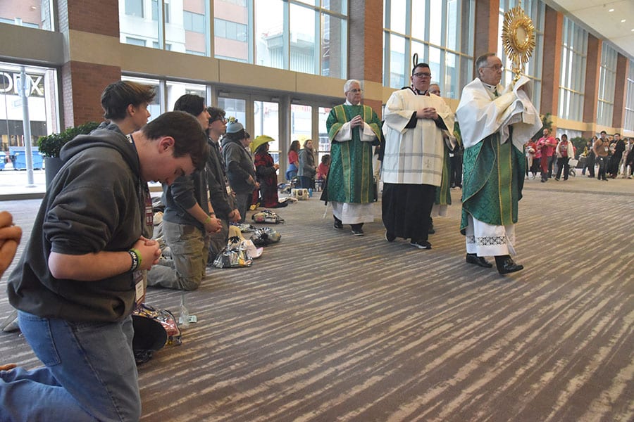 Pope tells U.S. high school students their voice, ideas, faith matter November 21, 2025By Cindy Wooden Catholic News Service Filed Under: Feature, News, Vatican, World News, Youth Ministry VATICAN CITY (CNS) — Pope Leo XIV urged U.S. high school students to be “intentional” with their screen time, their prayer time and their involvement in a local parish. “One of my own personal heroes, one of my favorite saints, is St. Augustine of Hippo,” the pope told 16,000 young Catholics meeting in Indianapolis. “He searched everywhere for happiness, but nothing satisfied him until he opened his heart to God. That is why he wrote, ‘You have made us for yourself, O Lord, and our heart is restless until it rests in you.” Mia Smothers, from the Archdiocese of Baltimore, listens to Pope Leo XIV after being the first to ask him a question during the pope’s digital encounter at the 2025 National Catholic Youth Conference in Indianapolis Nov. 21, 2025. (OSV News photo/Margaret Murray) With a livestream connection, Pope Leo spoke for close to an hour Nov. 21 with participants at the National Catholic Youth Conference meeting at Lucas Oil Stadium in Indianapolis. The pope responded to questions from five high school students: Mia Smothers from the Archdiocese of Baltimore; Ezequiel Ponce from the Archdiocese of Los Angeles; Christopher Pantelakis from the Archdiocese of Las Vegas; Micah Alcisto from the Diocese of Honolulu; and Elise Wing from the Archdiocese of Dubuque, Iowa. The questions were developed in meetings with other students and adults and were sent to the pope in advance. Pope Leo did respond to a question and comment posed by Katie Prejean McGrady, who was moderating the event. She mentioned that she had given the pope a pair of socks some time ago and said she wanted to know what he used as an opening word when he played Wordle each day. “I just want to say I only wear white socks, and I use a different word for Wordle every day, so there’s no set starting word,” the pope said, before turning to the young people’s questions. Pantelakis asked for the pope’s advice on balancing the use of smartphones and social media with “making faith connections outside of technology.” Pope Leo, using technology to address the students, listed many good things technology does. For example, “it lets us stay connected with people who are far away,” he said, and there are “amazing tools for prayer, for reading the Bible, for learning more about what we believe, and it allows us to share the Gospel with people we may never meet in person.” “But even with all that, technology can never replace real, in-person relationships; simple things (like) a hug, a handshake, a smile — all those things are essential to being human and to have those things in a real way, not through a screen,” is important. Pope Leo encouraged the students to follow the example of St. Carlo Acutis, who used technology to spread devotion to the Eucharist but limited his time online and made sure he went to Mass, spent time in eucharistic adoration and served the poor. Teenagers kneel in prayer while Indianapolis Archbishop Charles C. Thompson carries the Blessed Sacrament in a Eucharistic procession on Nov. 20, 2025, in the Indiana Convention Center in Indianapolis. The procession took place on the opening day of the three-day National Catholic Youth Conference, attended by some 15,000 Catholic teenagers from across the country. (OSV News photo/Sean Gallagher, The Criterion) “Be intentional with your screen time,” the pope told the young people. “Make sure technology serves your life and not the other way around.” Alciso asked for advice about using ChatGPT and other forms of artificial intelligence. While Pope Leo has continued to push AI developers and governments to formulate ethical guidelines and include controls to protect young people, he told the high school students that “safety is not only about rules; it is about education, and it is about personal responsibility. Filters and guidelines can help you, but they cannot make choices for you; only you can do that.” “Using AI responsibly means using it in ways that help you grow, never in ways that distract you from your dignity or your call to holiness,” the pope said. “AI can process information quickly, but it cannot replace human intelligence — and don’t ask it to do your homework for you.” AI, he said, “will not judge between what is truly right and wrong. And it won’t stand in wonder, in authentic wonder, before the beauty, the beauty of God’s creation. So be prudent. Be wise. Be careful that your use of AI does not limit your true human growth.” “Use it in such a way that if it disappeared tomorrow, you would still know how to think how to create, how to act on your own, how to form authentic friendships,” the pope said. And “remember, AI can never replace the unique gift that you are to the world.” Responding to Wing, who asked about the future of the church, Pope Leo told the young people they are an important part of its present. “Your voices, your ideas, your faith matter right now, and the church needs you,” he said. But, looking ahead, he asked them to ask themselves: “What can I offer the church for the future? How can I help others come to know Christ? How can I build peace and friendship around me?” Smothers, a Mercy High School freshman from Harford County, asked the pope if he ever finds it difficult to accept God’s mercy. “All of us struggle with this at times,” the pope said. “The truth is that none of us is perfect.” But, he added, it also is true that God always forgives. “We may struggle to forgive, but God’s heart is different,” Pope Leo told the teens. “God never stops inviting us back. We experience this mercy of God in a special way in the sacrament of reconciliation; in confession, Jesus meets us through the priest. When we honestly confess our sins an