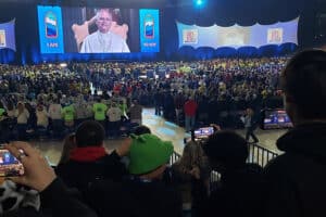 With a livestream connection, Pope Leo spoke for close to an hour Nov. 21 with participants at the National Catholic Youth Conference meeting at Lucas Oil Stadium in Indianapolis.